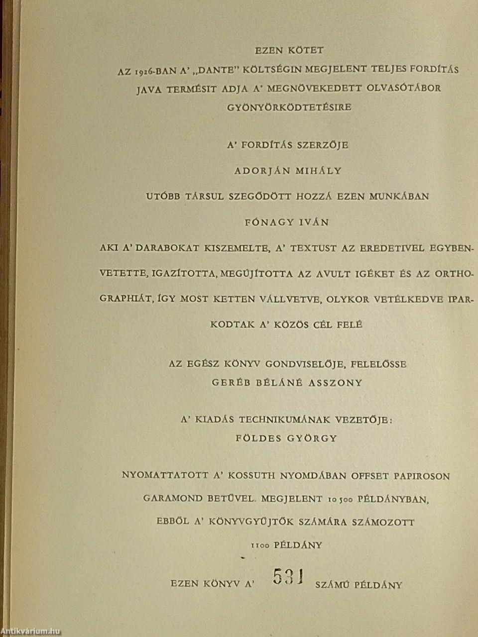 | Megjegyzés: | Bordázott gerincű félbőr kötésben. Színes illusztrációkat tartalmaz. Megjelent 1100 számozott példányban. |