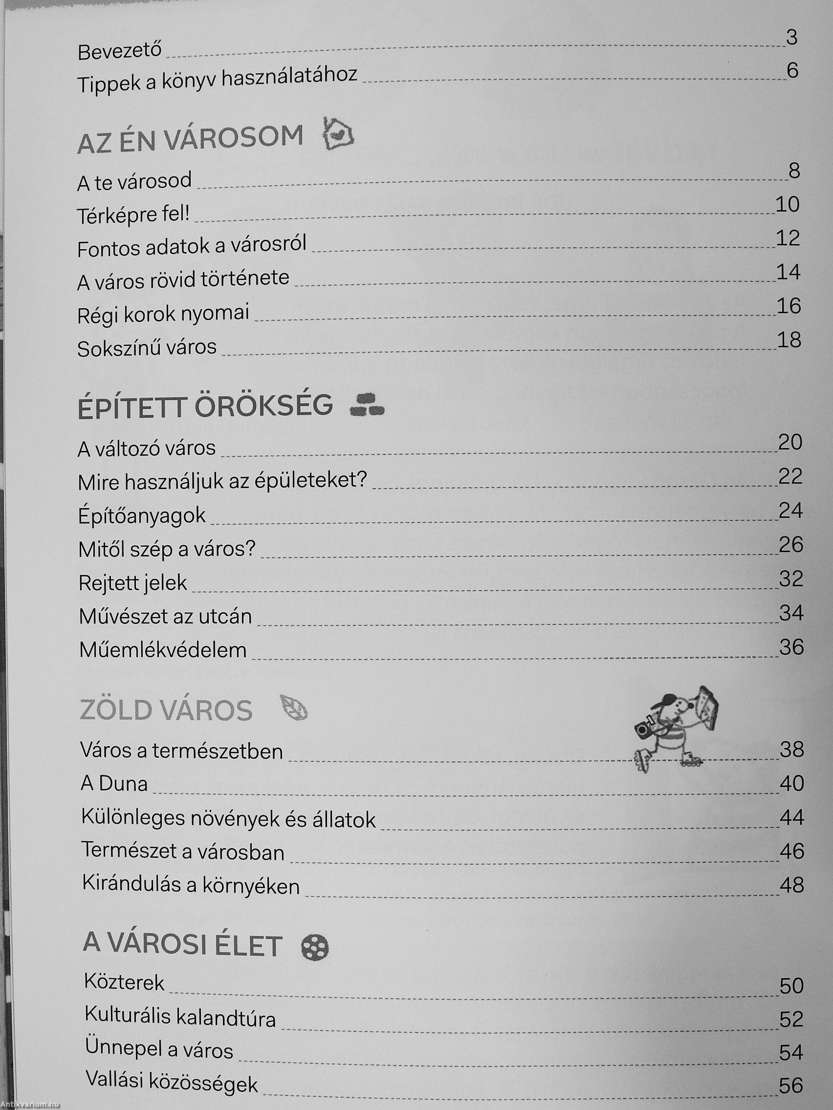 A kötet közvetlen hangvételű, játékos, változatos feladatokkal tisztáz fogalmakat, nyújt sokoldalú ismereteket, amelyeket izgalmas illusztrációk gazdagítanak. Kisiskolások számára könnyen érthetően mutatja be a város működését, az épített örökség emlékeit, a természeti környezet értékeit.