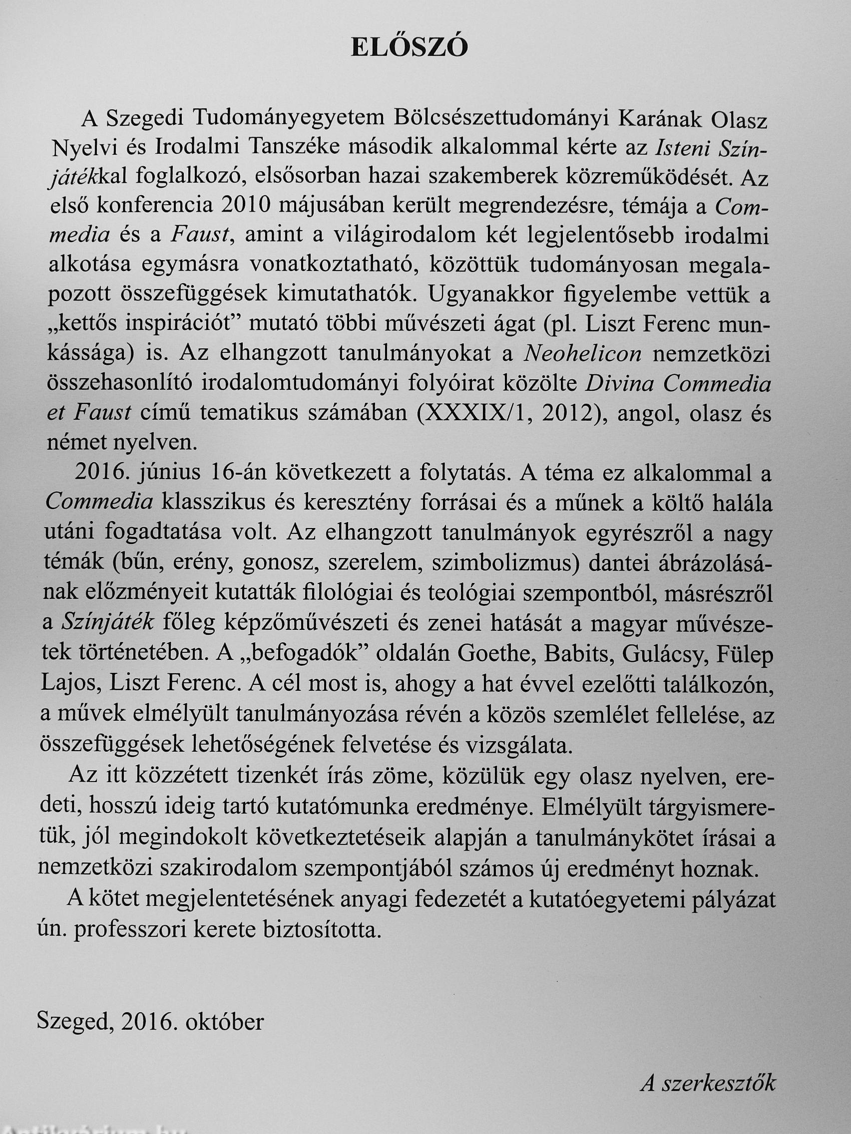 Kiadó: Szegedi Tudományegyetem-Olasz Nyelvi és Irodalmi Tanszék