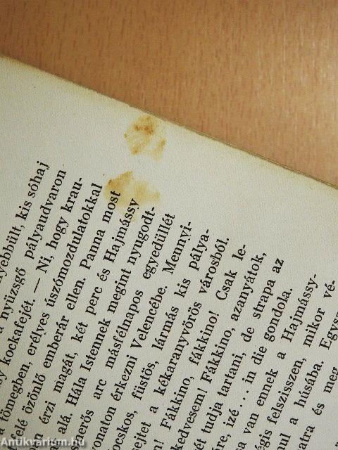 - Jaj, hál' Istennek! - megkönnyebbült, kis sóhaj szakad fel Pannából, mikor a nyüzsgő pályaudvaron végre felfedezi Hajmássy kockafejét. - Ni, hogy kraulozik elszántan a tömegben, erélyes úszómozdulatokkal küzd a kijárat felé özönlő emberár ellen. Panna most már biztonságban érzi magát, két perc és Hajmássy ideér a vonatablak alá. Hála Istennek megint nyugodtság, védettség, ismerős arc másfélnapos egyedüllét után. Fura dolog vonaton érkezni Velencébe. Mennyivel szebb hajón! Mocskos, füstös, lármás kis pályaudvar, semmit sem sejtet a kékaranyvörös városiból.