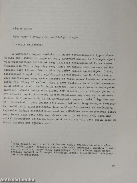 A Debreceni Magyar Nyelvészeti Napok megrendezésére éppen akkor került sor, amikor az egyetem régi, nagynevű magyar és finnugor nyelvész-professzorai halálának vagy tanítása megkezdésének kerek számú évfordulója van, s így négy nagy tudós emlékének hódolhattunk emlékülésen. Vissza