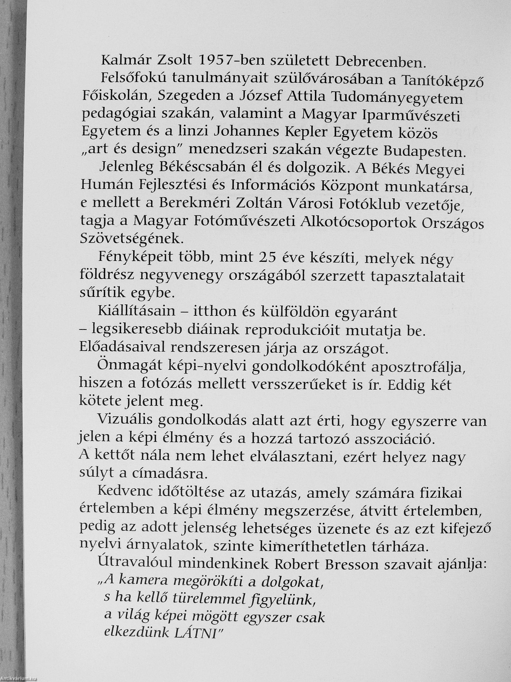 Megjegyzés: Megjelent 500 példányban, színes fotókkal. Nyomtatta az Aero-Press Bt. Békéscsabán.
