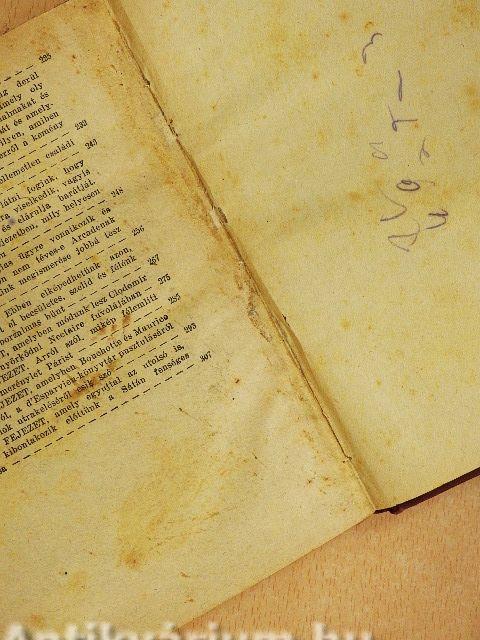 | Tizenhatodik fejezet, melyben egymásután lép fel Mira, a jósnő, Zéphyrine és Amédée, a végzet ember és amely Sariette úr szörnyű példájával bizonyítja Euripides ama gondolatátnak igazságát, hogy akit Jupiter el akar veszteni, annak eszét veszi | 126 |