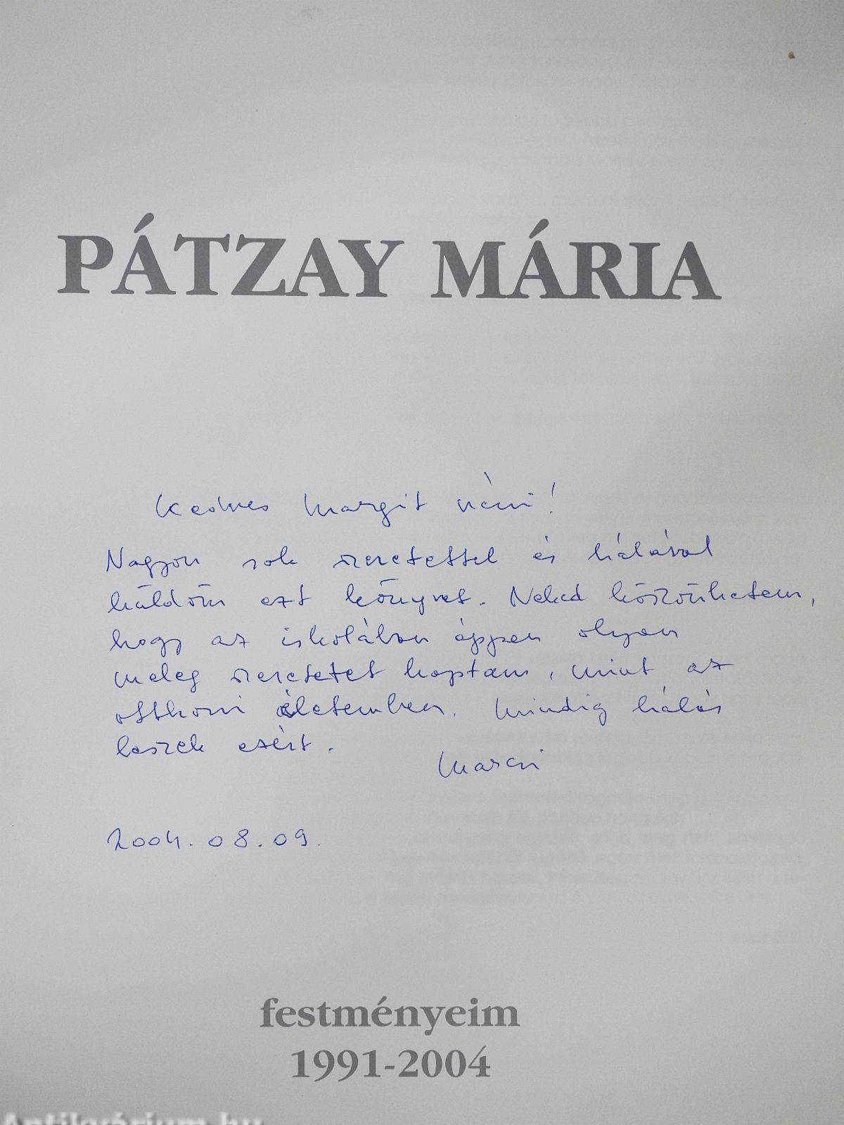 | Megjegyzés: | Pátzay Mária festőművész által dedikált példány. Színes reprodukciókkal. |