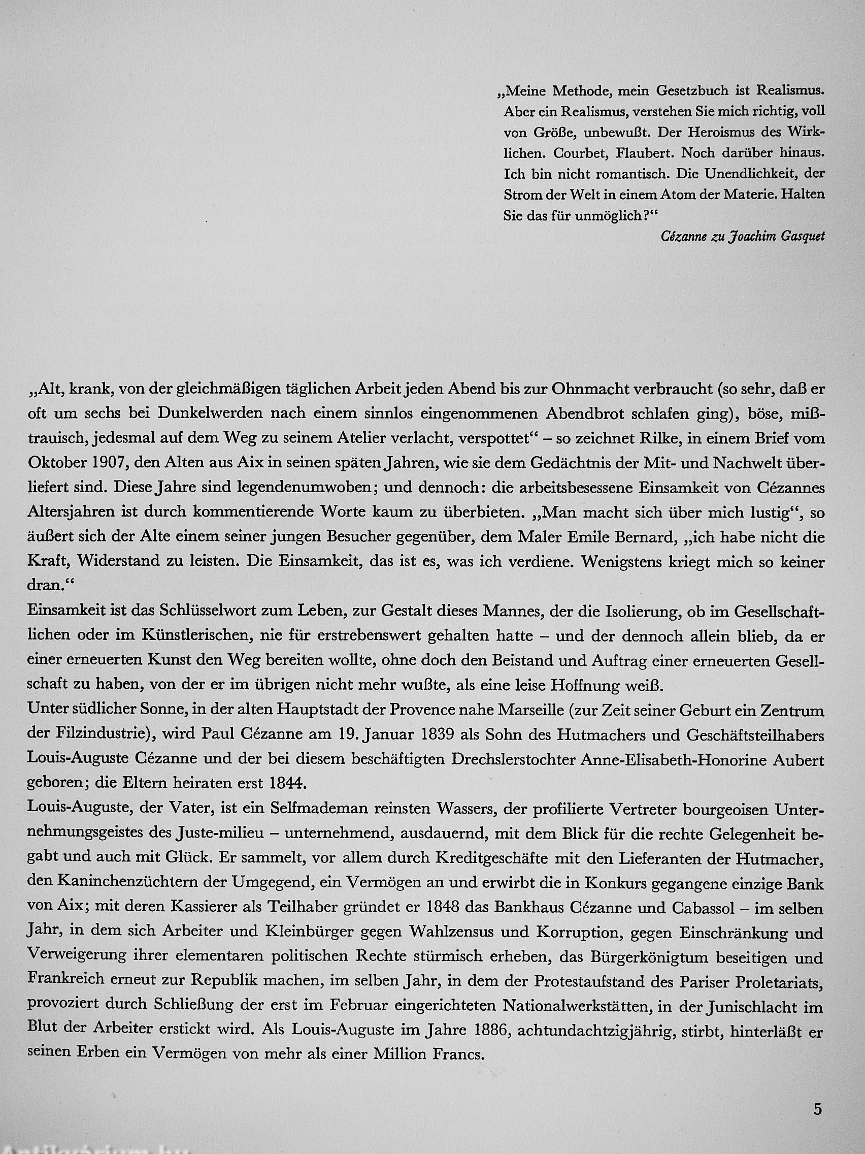 Während meines ganzen Lebens habe ich gearbeitet, um es so weit zu bringen, mir mein Leben verdienen; aber ich dachte, daß man gute Malerei machen könne, ohne die Aufmerksamkeit auf sein Privatleben zu lenken. Sicherlich wünscht ein Künstler, sich intellektuell so hoch wie nur möglich zu erheben, doch-soll der Mensch im Dunkeln bleiben.