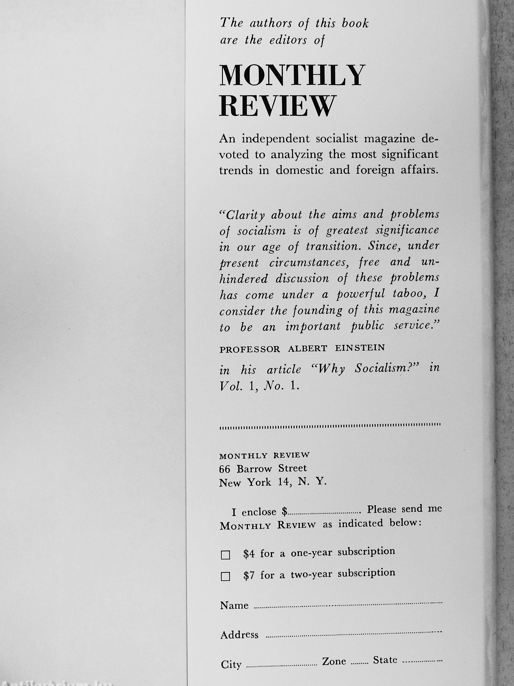 The authors, Leo Huberman and Paul M. Sweezy, have long and distinguished records in both journalism and scholarship. Since 1949, they have been co-editors of Monthly Review, America's leading socialist magazine. Both have been university teachers of social science....