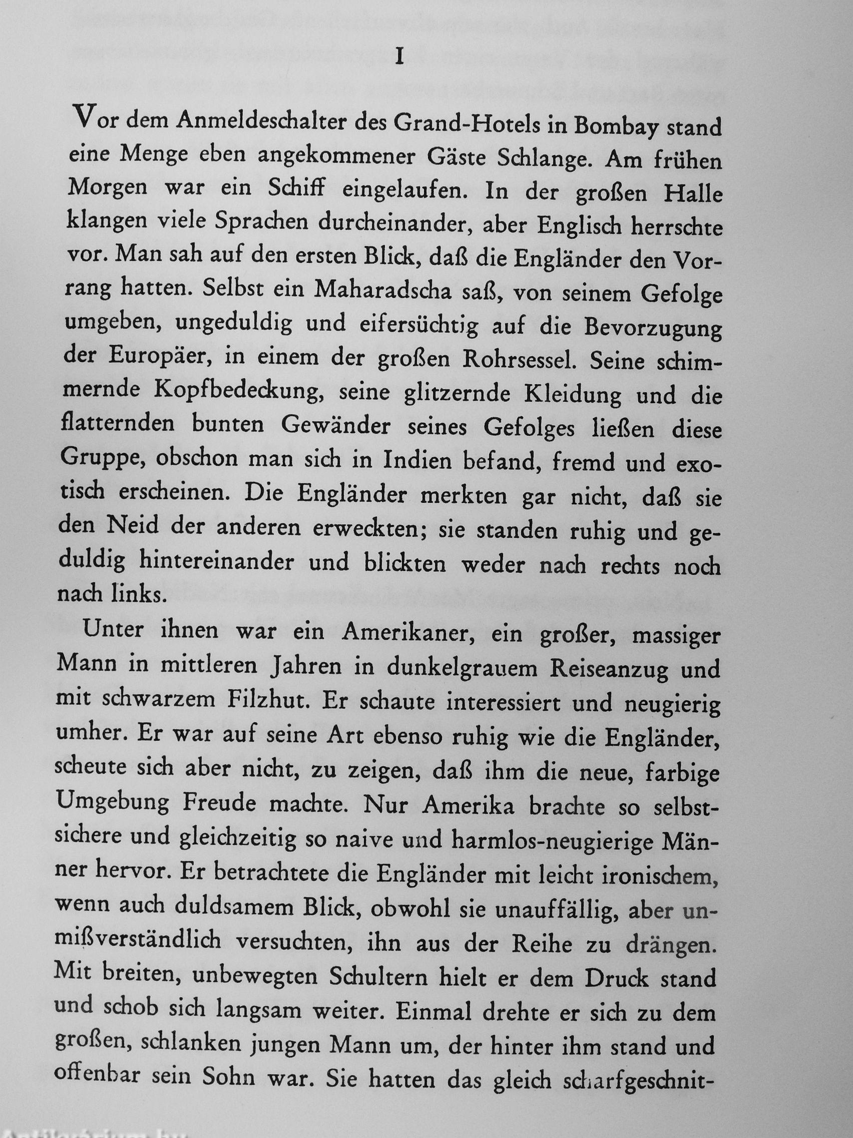 Vor dem Anmeldeschalter des Grand Hotels In Bombay stand eine Menge eben angekommener Gäste Schlange. Am frühen Morgen war ein Schiff eingelaufen und nun klangen in der großen Halle viele Sprachen durcheinander. Mitten in dieser Menge stand ein Amerikaner, ein großer, massiger Mann in mittleren Jahren, selbstsicher und gleichzeitig harmlos neugierig um sich blickend. Ihm folgte ein schlanker, junger Mann, sein Sohn. Der Geschäftsführer warf einen Blick auf den Namen, den der Fremde in das Gästebuch schrieb: David Hardworth Mac Ard.