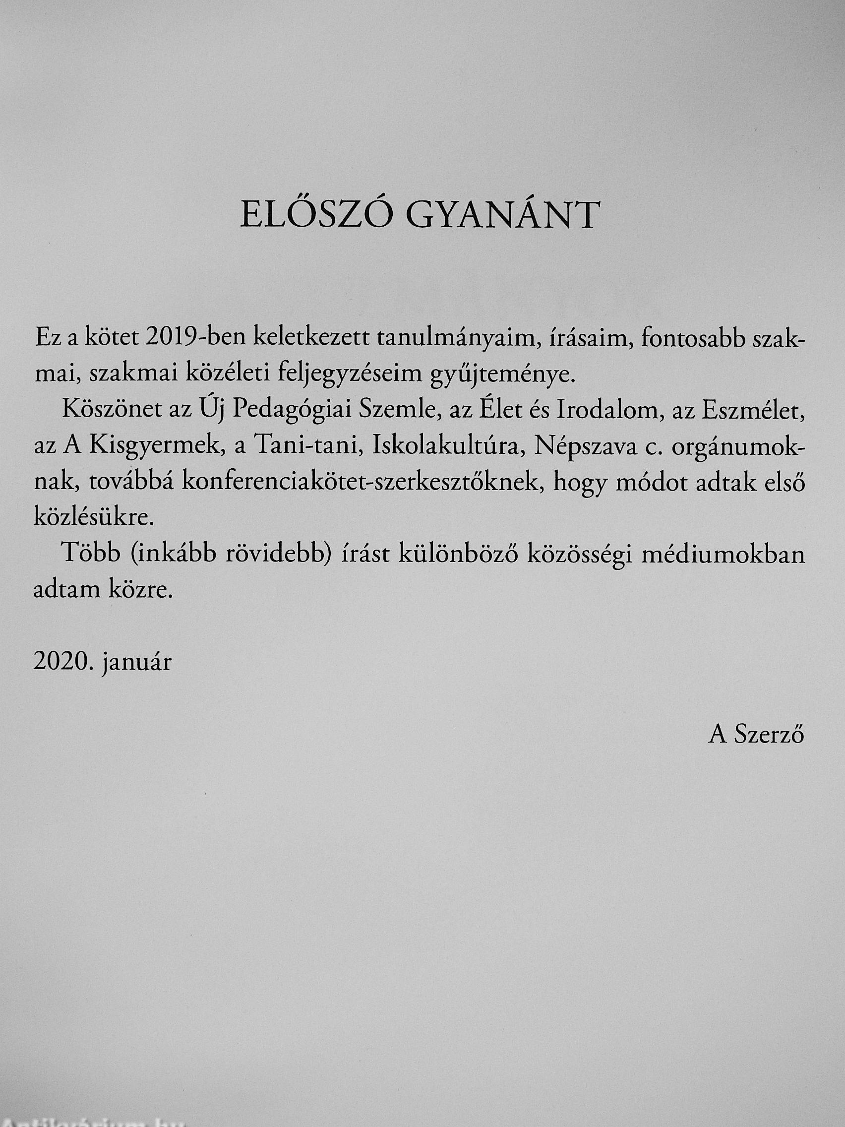 Köszönet az Új Pedagógiai Szemle, az Élet és Irodalom, az Eszmélet, az A Kisgyermek, a Tani-tani. Iskolakultúra c. orgánumoknak, konferenciakötet-szerkesztőknek "logy módot adtak első közlésükre. Több [inkább rövidebb] írást különböző közösségi médiumokban adtam <özre.