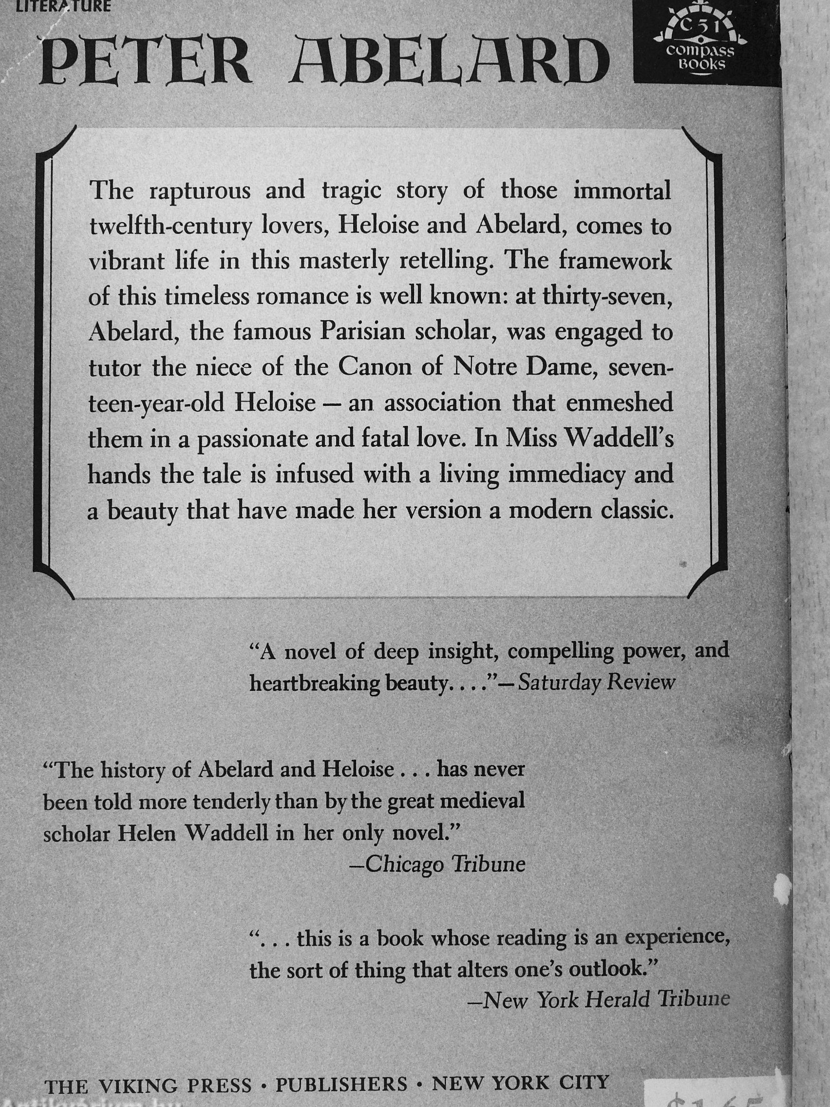 "The history of Abelard and Heloise has never been told more tenderly than by the great medieval scholar Helen Waddell in her only novel."