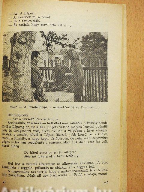 Hét falun - Dunavecsén, Pencen, Borjádon, Nagyaron, Tunyogmatolcson, Koltón, Mezőberényen - és hét városon - Sopronon, Miskolcon, Sárospatakon, Pesten, Szabadszálláson, Székelykeresztúron, Segesváron - fog átvezetni bennünket a szerző, közben két országot is bejárunk, egyre Petőfi nyomában tartva. Ezek a cikkek 1955 és 1959 között keletkeztek, nem a mostani rendjük szerint, nagyobb fele a Magyar Nemzetben jelent meg, a többi más napilapokban és folyóiratokban, nem tudományos szemlékben. Az író leplezetlen célja volt: Petőfiről beszélni, közérthető nyelven, a legszélesebb tömegek számára, de "alászállás" nélkül. A keltezés, mely minden cikk végén ott szerepel, nemcsak az írás maiságát bizonyítja, hanem azt is, hogy az író eredetileg nem gondolt cikksorozatra, arra, hogy ezeket a riportokat bármiféle összefüggő füzérbe rendezze.
