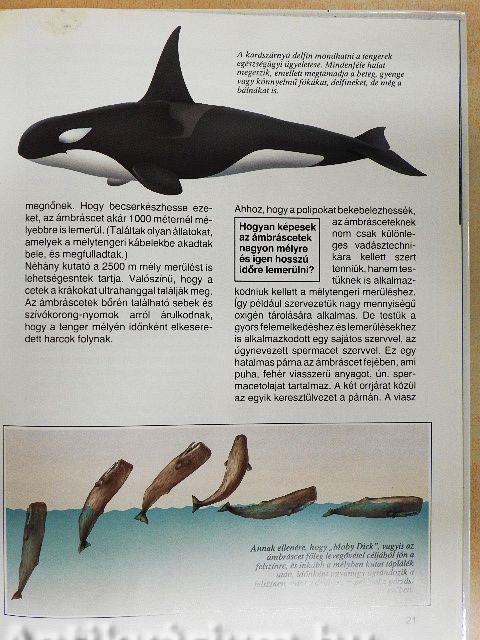 Az ember végveszélybe sodorta a bálnákat. Természetvédők és állatbarátok, akárcsak e könyv szerzője, Petra Deimer, a neves tengerbiológus is, elhatározták, hogy felhívják erre az emberek figyelmét, és harcolni fognak az állatok fennmaradásáért. Ezek az intelligens tengeri emlősök a hosszú távú vándorlás és a mélymerülés nagymesterei. Bonyolult, hangvisszaverődésen alapuló tájékozódási rendszerük van, fiatal, sérült vagy beteg társaikat közösen segítik, s több száz kilométer távolságból is megértik egymást. Vajon mit tudnak a tudósok minderről, mennyire ismerik ezeknek a valaha szárazföldi emlősöknek a szokásait, ösztöneit? Mindezeken kívül ebben a könyvben olvashatunk a bálnavadászatokról, a ceteket körüllengő hiedelmekről, Moby Dickről és még sok más Izgalmas kérdésről.