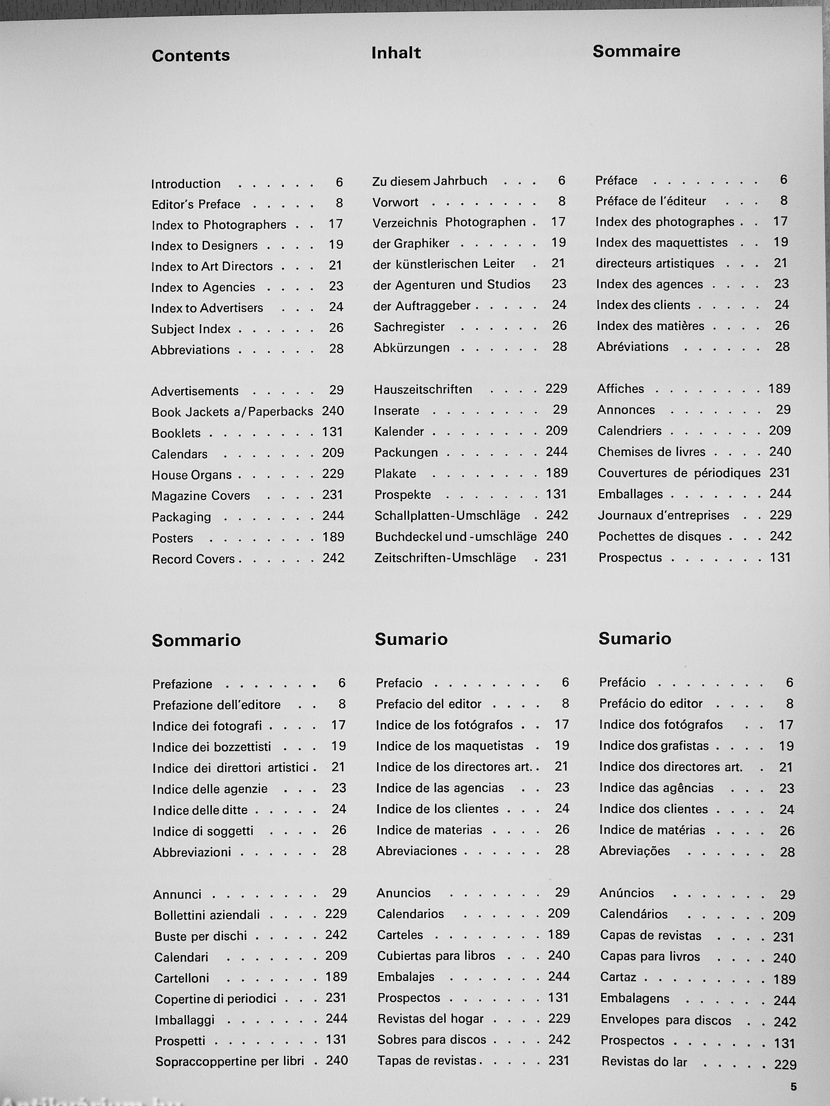 So far there has been no international review of the outstanding achievements in this field. PHOTOGRAPHIS now steps into the gap: it is the first international annual devoted exclusively to advertising photography. In 671 illustrations of items chosen from 8,200 entries and 28 countries, it provides a panorama of the possibilities of photography in modern advertising that extends over 74 pages in colour and 170 in black and white. PHOTOGRAPHIS is an indispensable work of reference with classification by media—advertisements, booklets, posters, calendars, magazine, book and record covers, packs—and includes indexes of photographers, designers, art directors, agencies, advertisers and subjects.