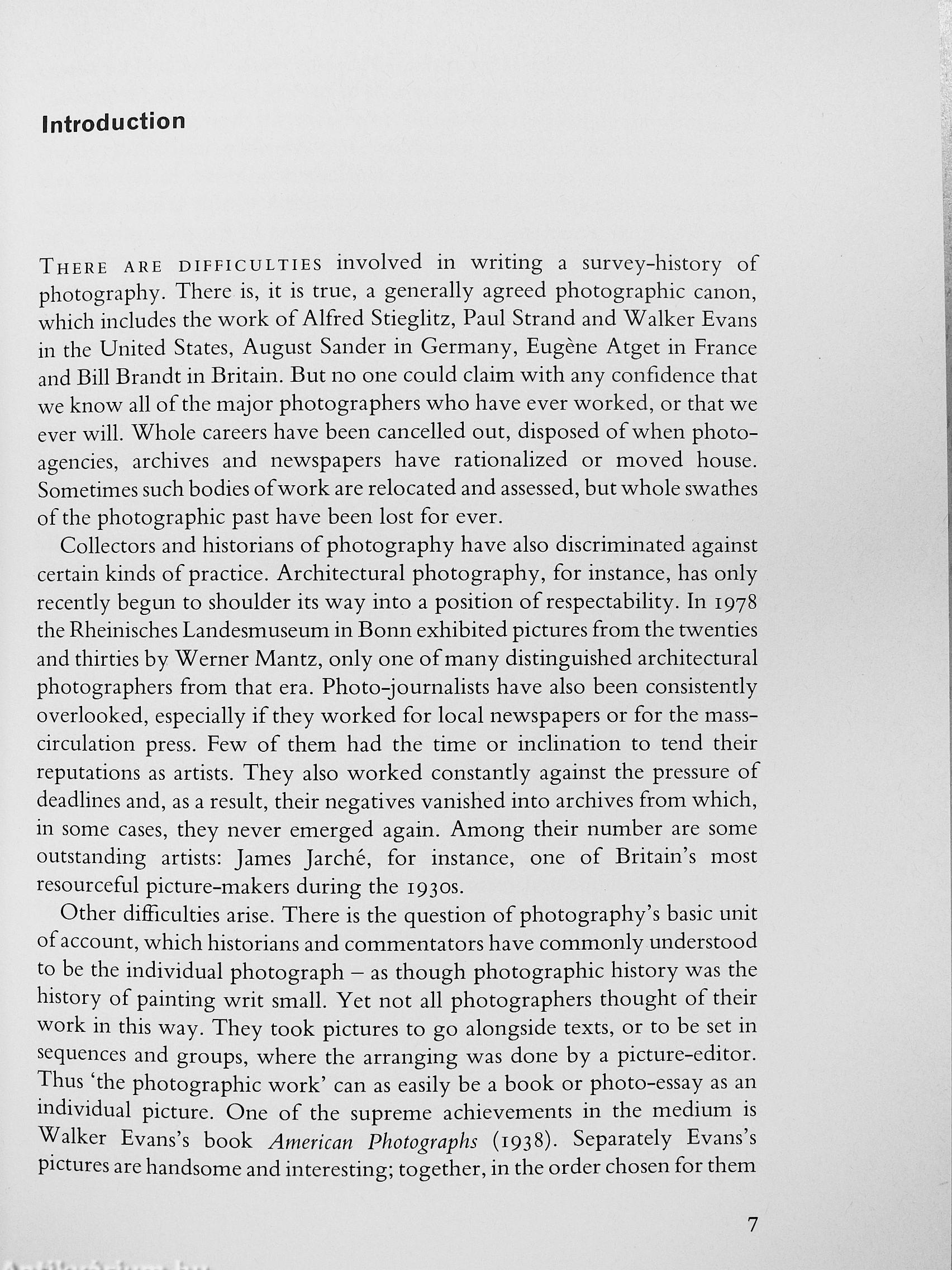 Ian Jeffrey read history at M^nTchester University and went on to postgraduate studies in Italian Renaissance art at the Courtauld Institute. Since 1970 he has taught art history át the Univérsity of London Gold-smiths' College. His writings have appeared in^e London Magazine, Studio International and Creative Camera, and he has organized or collaborated in a number of exhibitions for the Arts Council of Great ^ Britain, including The Real Thing (Hayward Gallery, 1974), a survey o| -British photography from its origins; Cityscape (Royal Academy, 1978), on urban themes in the art of the United States, Britain and Germany; and most recently The Thirties (Hayward Gallery, 1980).