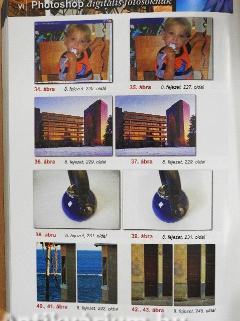 Hogyan végezze el szenvedés nélkül a fényképek színkorrekcióját (meg fog döbbenni, hogy ez milyen könnyen megy, ha tudja a titkot). Egy teljes fejezet szól a legújabb, leginkább keresett különleges Photoshop effektekről! Hogyan csökkentse a zajt kezelje az objektív által okozott problémákat kerülje el a fényudvart stb. Hogyan mutassa be műveit úgy, ahogy a profik teszik!