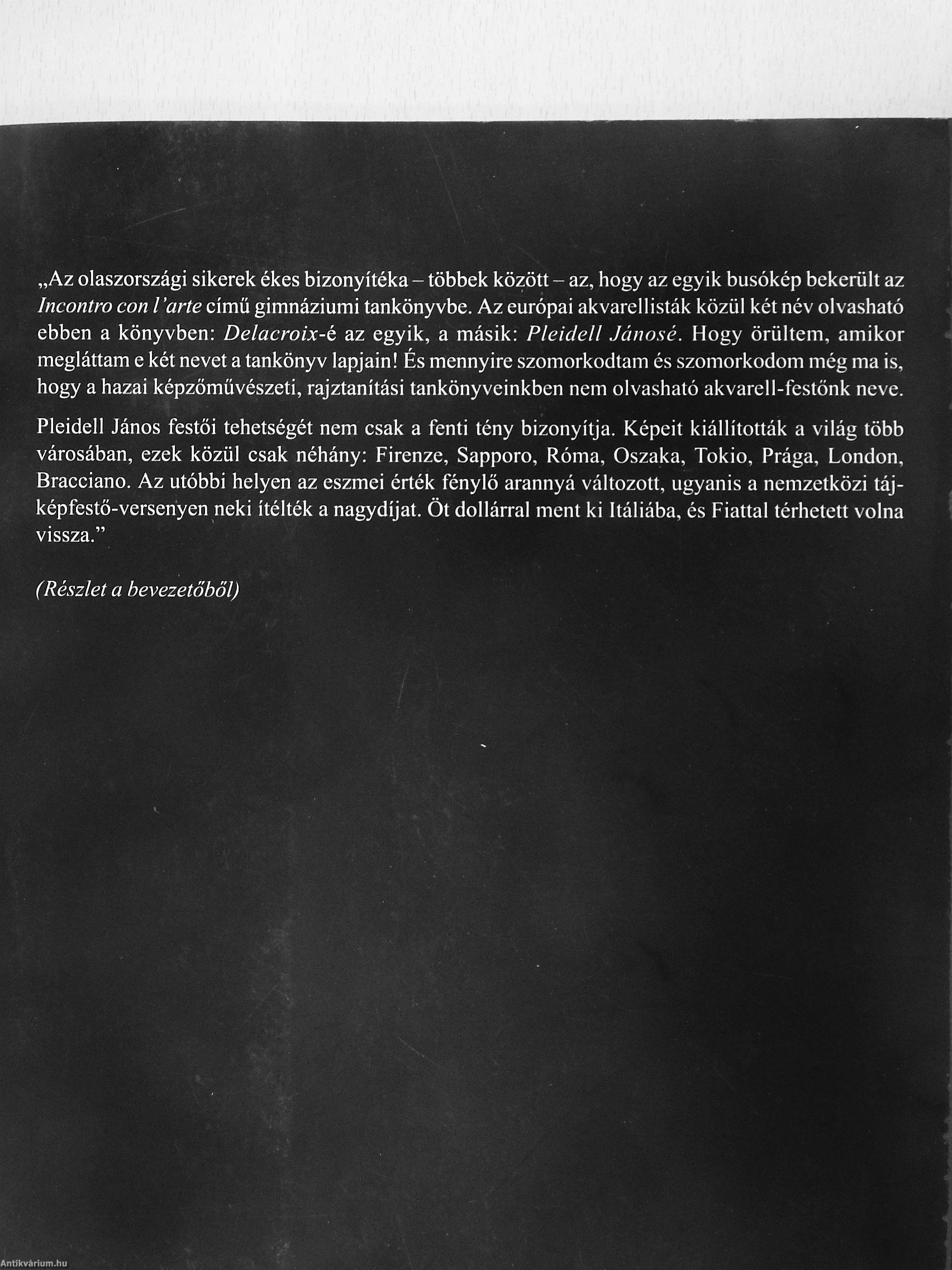 „Az olaszországi sikerek ékes bizonyítéka - többek között - az, hogy az egyik busókép bekerült az Incontro con l 'arte című gimnáziumi tankönyvbe. Az európai akvarellisták közül két név olvasható ebben a könyvben: Delacroix-é az egyik, a másik: Pleiclell Jánosé. Hogy örültem, amikor megláttam e két nevet a tankönyv lapjain! És mennyire szomorkodtam és szomorkodom még ma is, hogy a hazai képzőművészeti, rajztanítási tankönyveinkben nem olvasható akvarell-festönk neve.