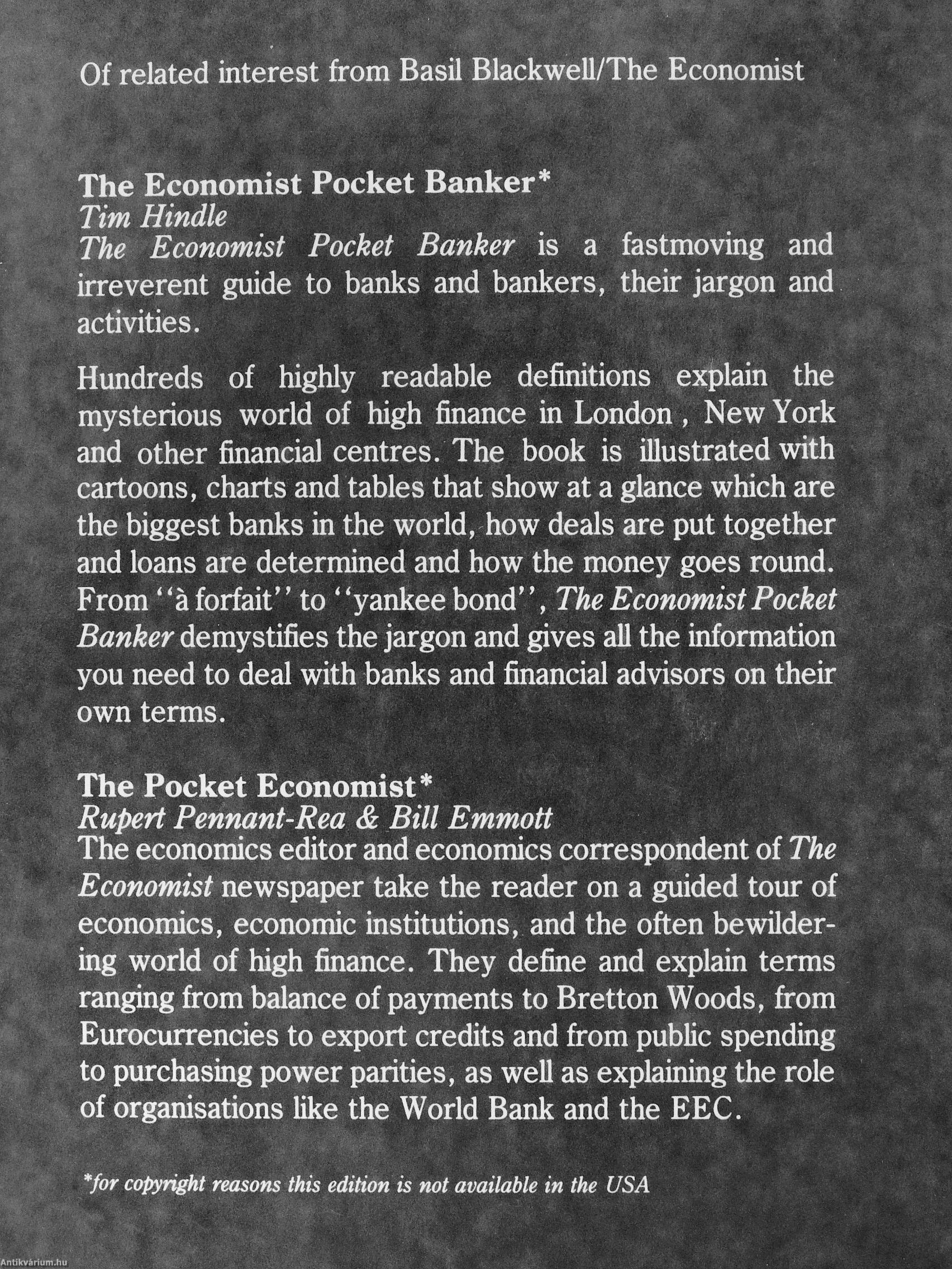 Rupert Pennant-Rea & Bill Emmott The economics editor and economics correspondent of The Economist newspaper take the reader on a guided tour of economics, economic institutions, and the often bewildering world of high finance. They define and explain terms ranging from balance of payments to Bretton Woods, from Eurocurrencies to export credits and from public spending to purchasing power parities, as weU as explaining the role of organisations like the World Bank and the EEC.
