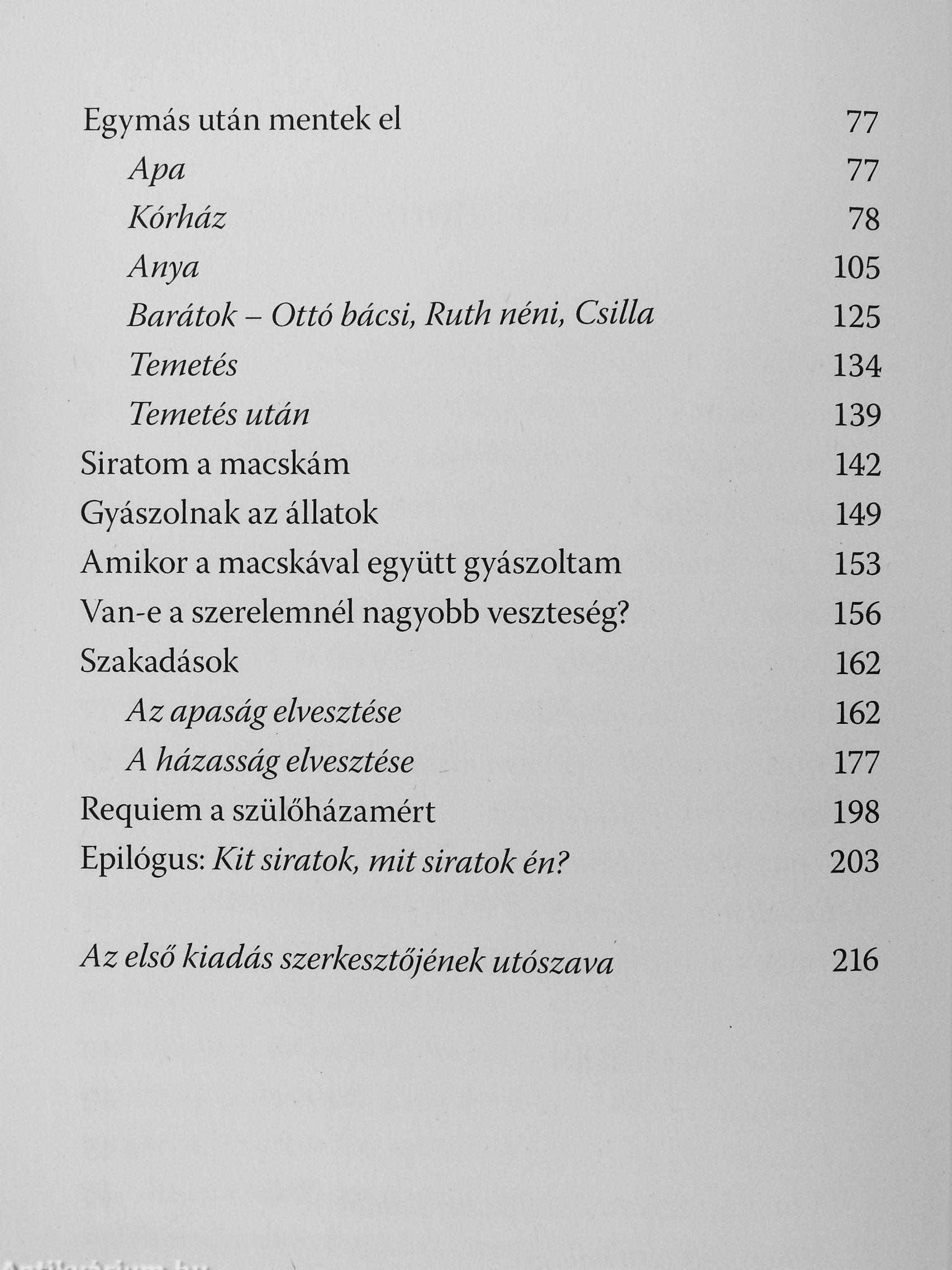 Ezúttal nem Polcz Alaine mesél - neki mesélnek barátok, barátnők, ismerősök. Vallomásaik emlékeztetnek bennünket, hogy nemcsak elhunyt szeretteinket gyászolhatjuk, de egy családtaggá fogadott négylábút vagy egy rég megszokott élethelyzetet. Siratjuk a minket elhagyó kedvest, aki él ugyan, csak éppen nem velünk, sőt a családban betöltött szerepünket is.