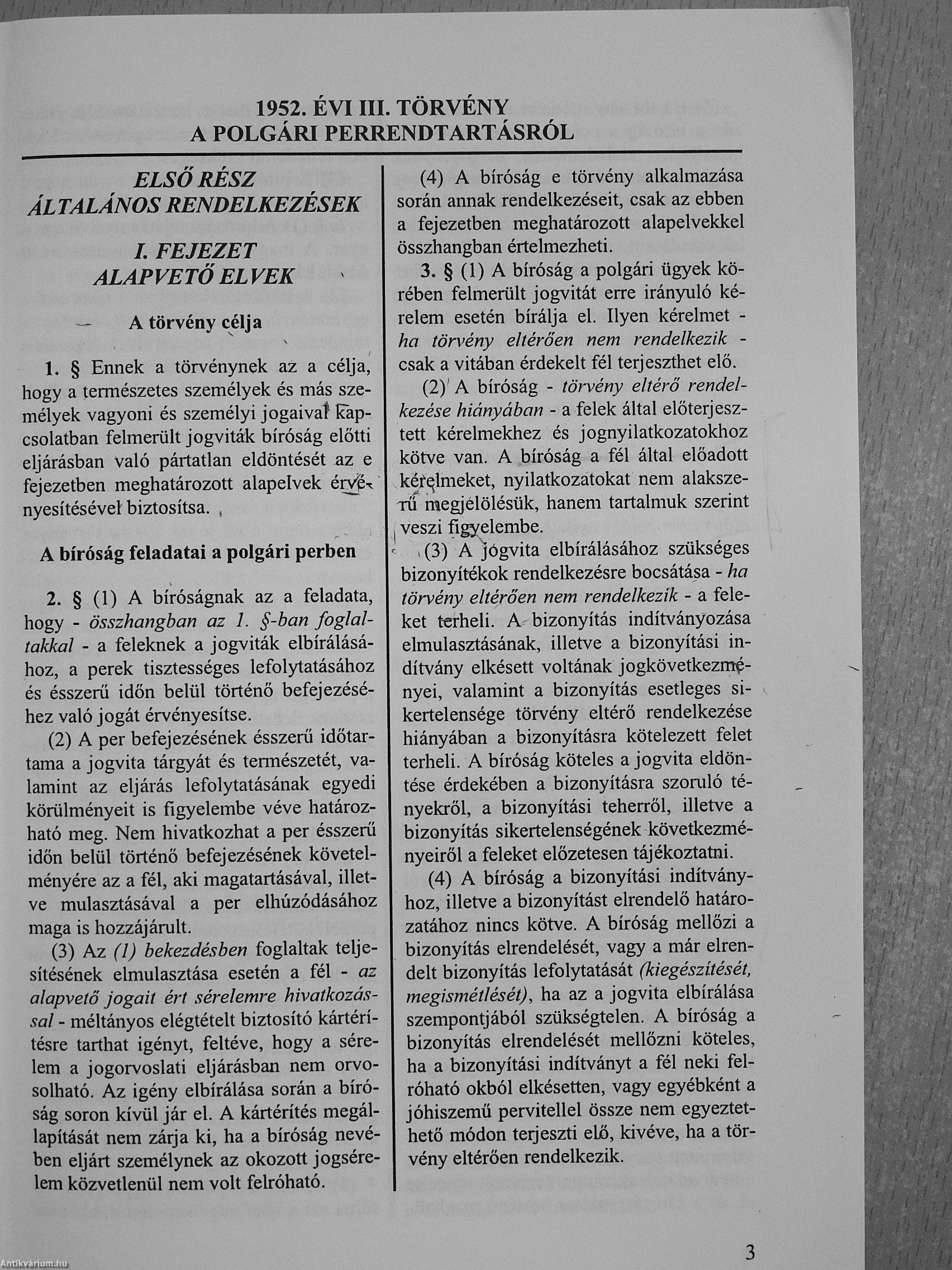 1952. évi III. törvény a polgári perrendtartásról/Kiegészítve a vonatkozó kollégiumi állásfoglalásokkal és jogegységi határozatokkal/2012. szeptember 1.