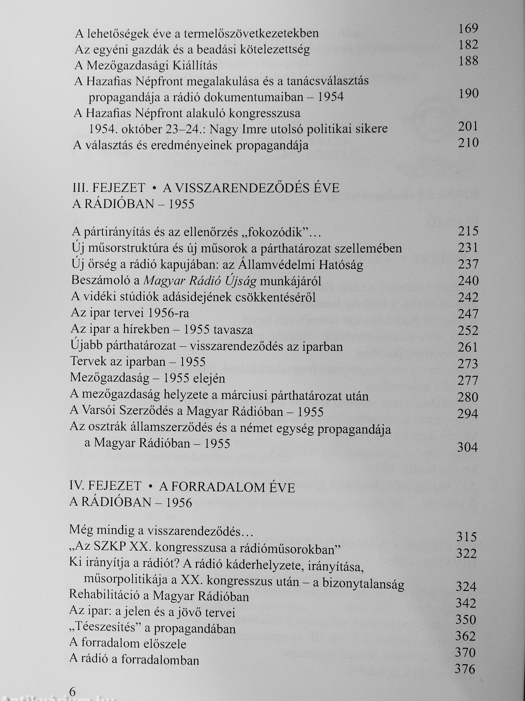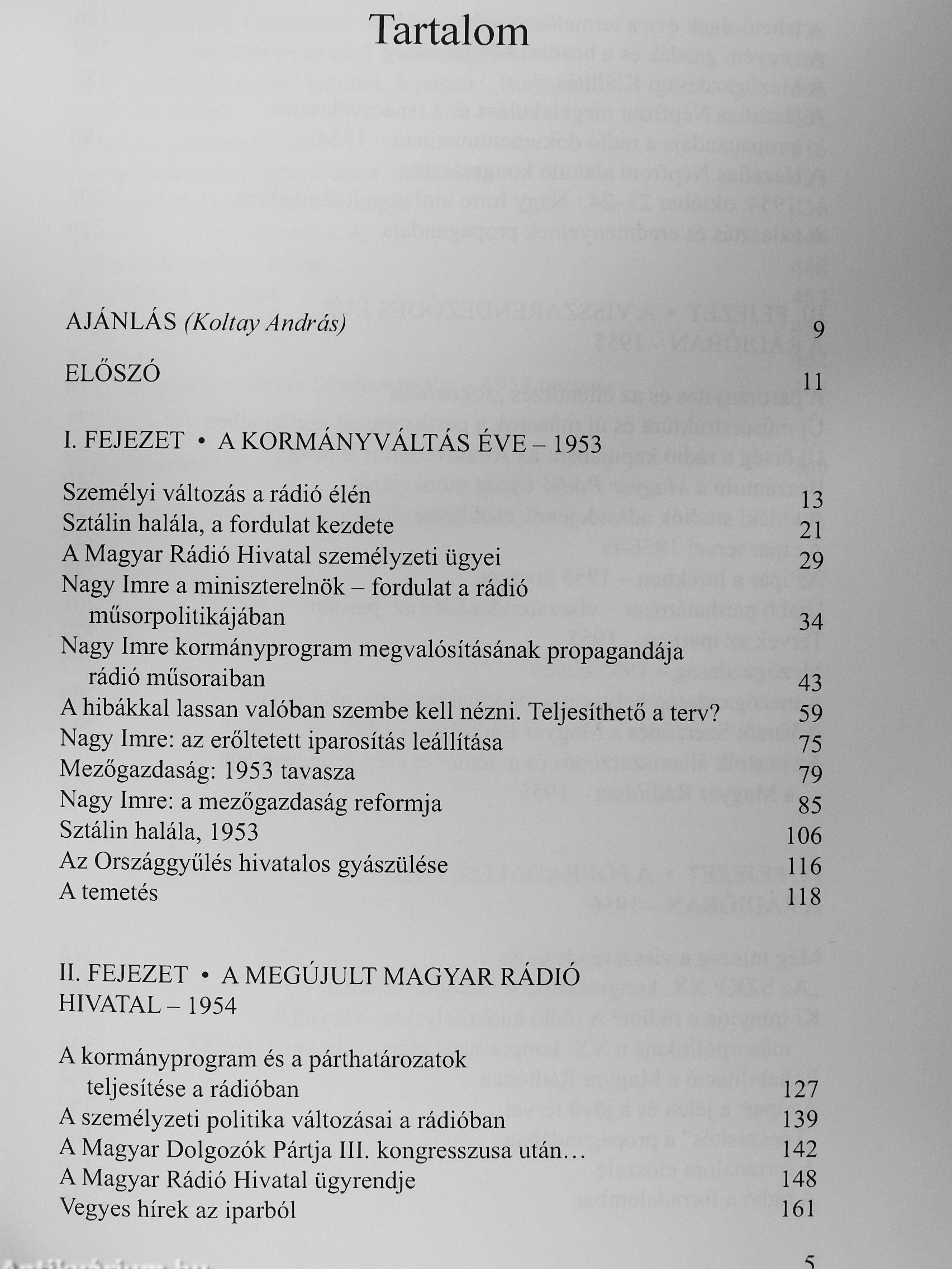 ; " . Jelen kötet részletesen ismerteti a Sztálin halálát kísérő és az azt követő változásokat, a Nagy Imre-kormány intézkedéseit, majd az ezt követő 1955-ös visszarendeződést, a XX. kon-gresszus hatására elindult visszafordíthatatlan folyamatokat és végül a rádiónak az 1956. ok-tóber 23-án kezdődő forradalomban betöltött ¦ szerepét tekinti át.