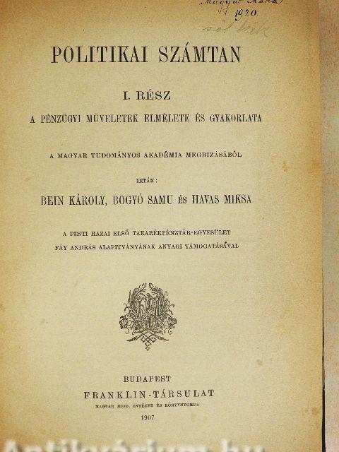 | Megjegyzés: | Nyomtatta a Franklin-Társulat nyomdája. |