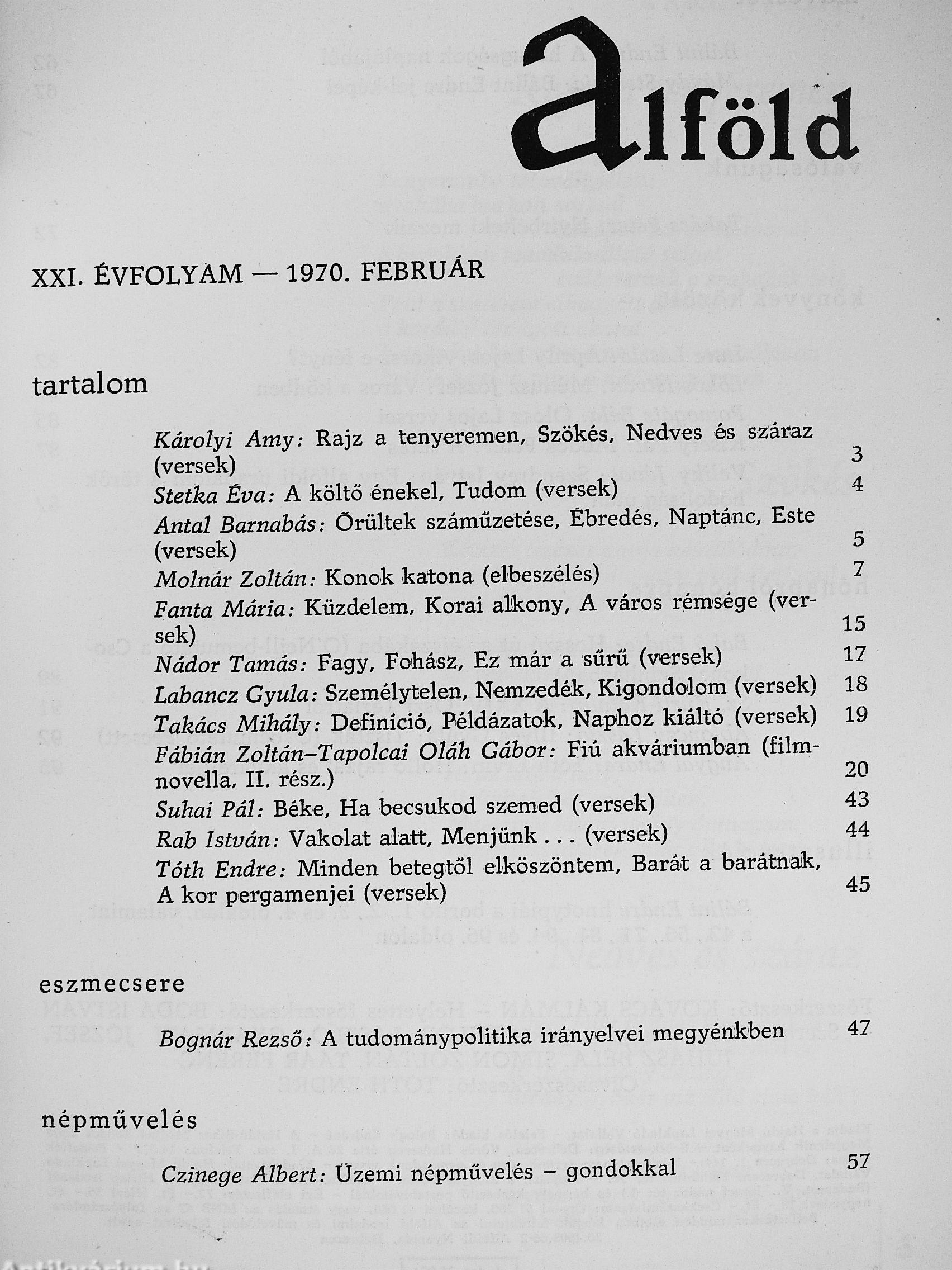 Irodalmi és művelődési folyóirat - XXI. évfolyam 2. szám