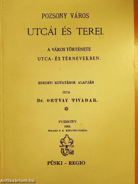 Ebből az alkalomból adjuk ki Ortvay Tivadar 1905-ben megjelent "Pozsony város utcái és terei" című 660 oldalas munkáját, mely mind a mai napig a legpontosabb ismertető leírása a város fejlődésének, történelmi nagyságának, kulturális jelentőségének.