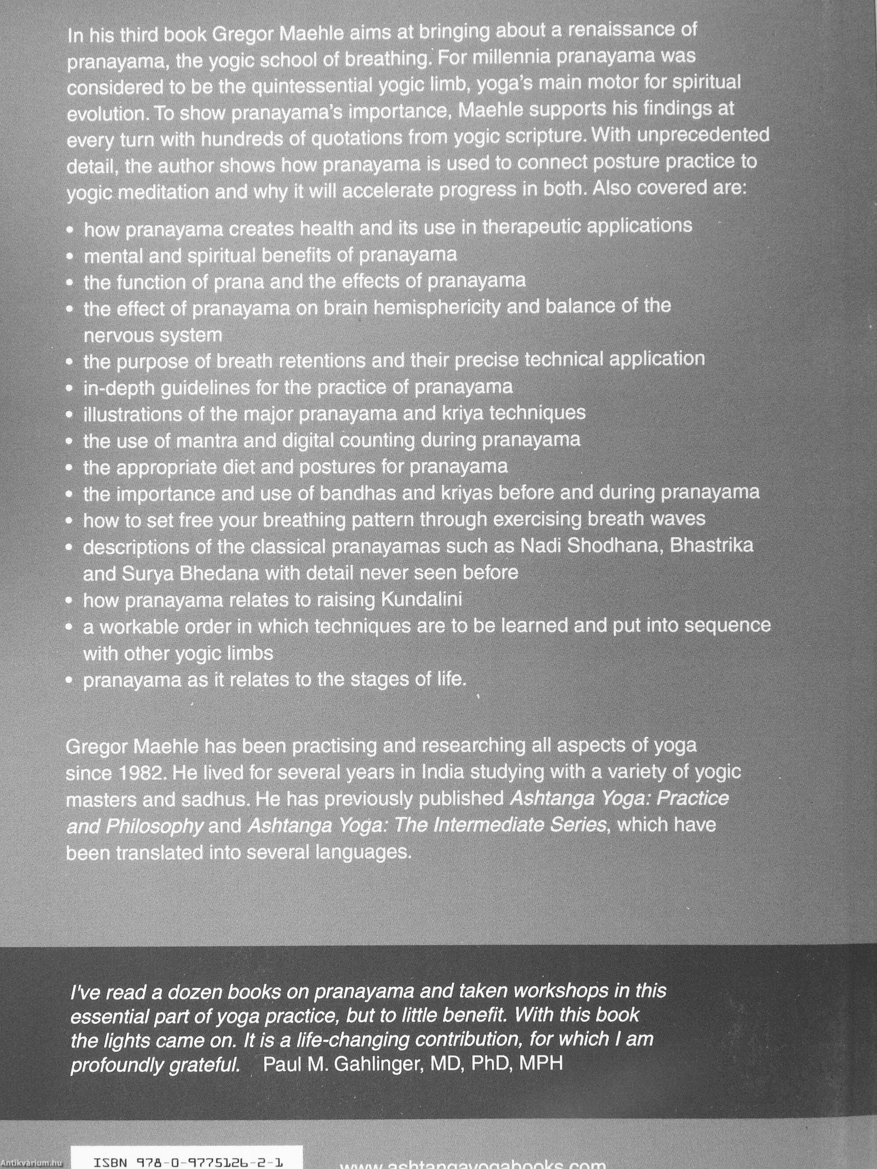 I've read a dozen books on pranayama and taken workshops in this essential part of yoga practice, but to little benefit. With this book the lights came on. It is a life-changing contribution, for which I am profoundly grateful. Paul M. Gahlinger, MD, PhD, MPH