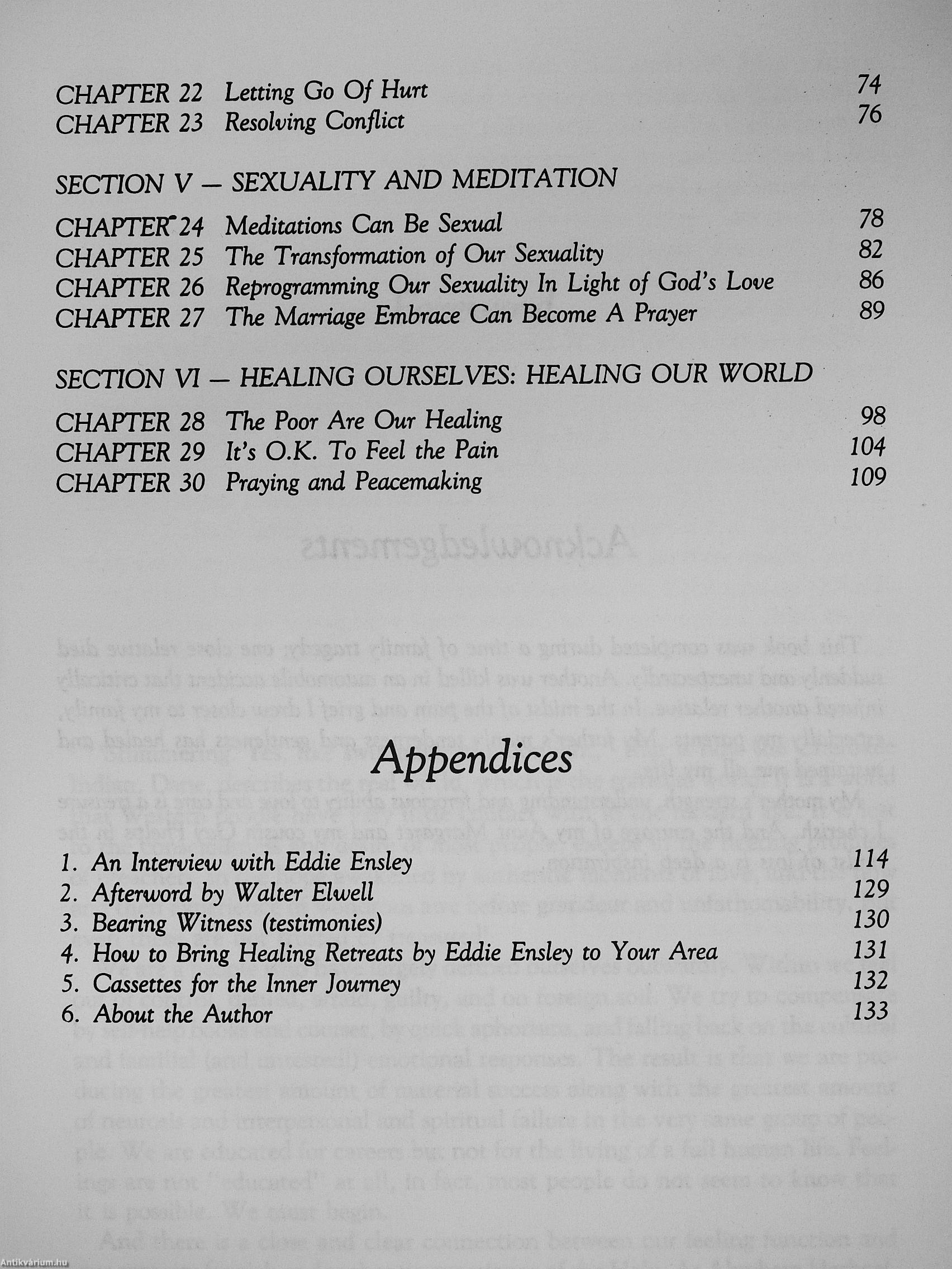 Prayer tliat Heals Our Emotions guides you on a powerful journey of healing - for yourself and those you care about. You are drawn into guided prayer experiences designed to relax you and reduce tension while bringing God's comfort and calm into the depths of your soul. . . This book has been called the "finest and most thorough collection of guided prayer experiences yet published." And the "first book to open up the contemplative depths of healing in such a warm and popular style . . . Almost no book within recent memory as created such excitement among Christian leaders."