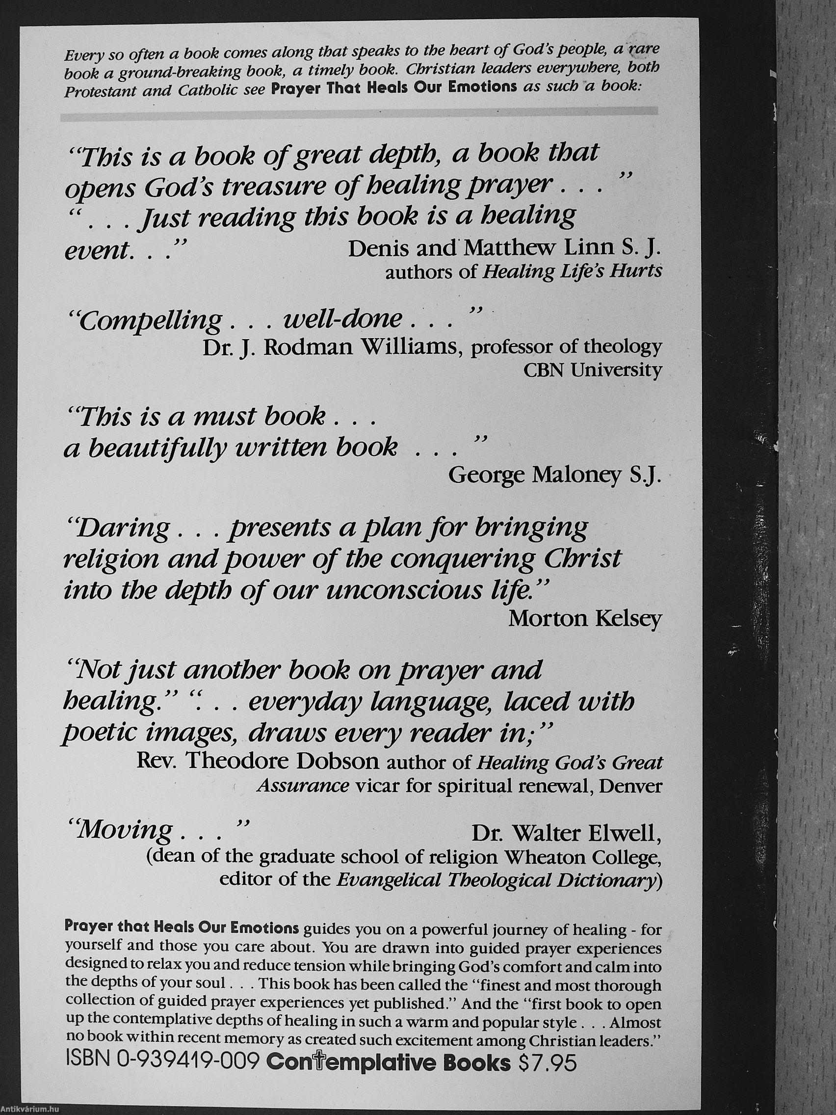 Every so often a book comes along that speaks to the heart of God's people, a rare book a ground-breaking book, a timely book. Christian leaders everywhere, both Protestant and Catholic see Prayer Thot Heols Our Emotions as such d book-