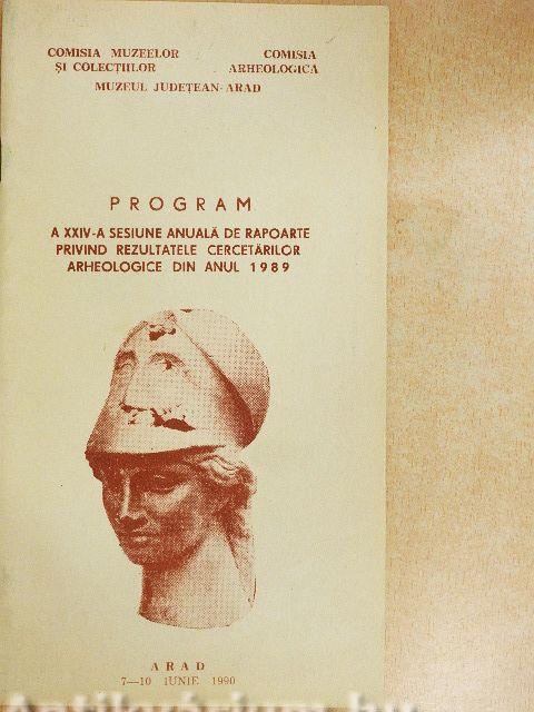 Program - A XXIV-A sesiune anuala de rapoarte privind rezultatele cercetarilor arheologice din anul 1989