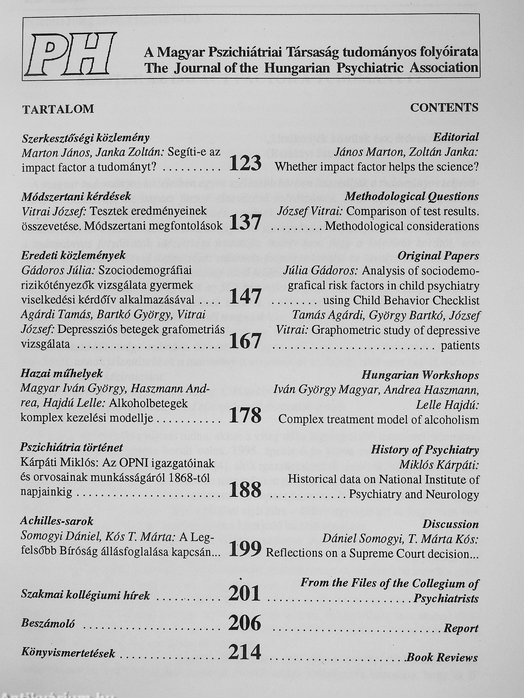 A Magyar Pszichiátriai Társaság tudományos folyóirata - 11. évfolyam 2. szám/The Journal of the Hungarian Psychiatric Association