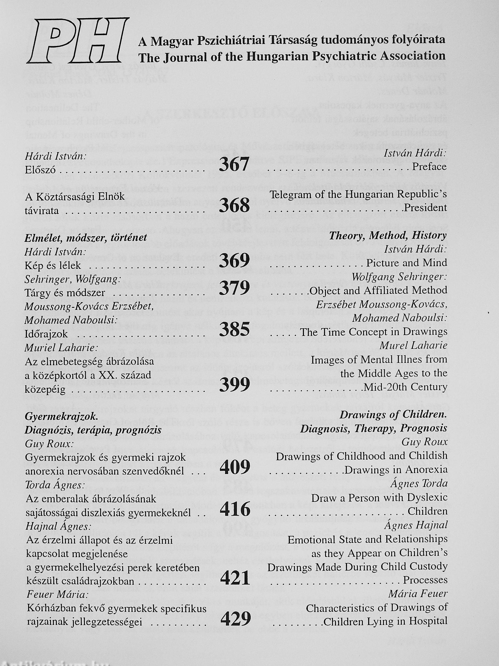 Kép és lélek tematikus szám/A Magyar Pszichiátriai Társaság tudományos folyóirata - XV. évfolyam 4. szám/The Journal of the Hungarian Psychiatric Association