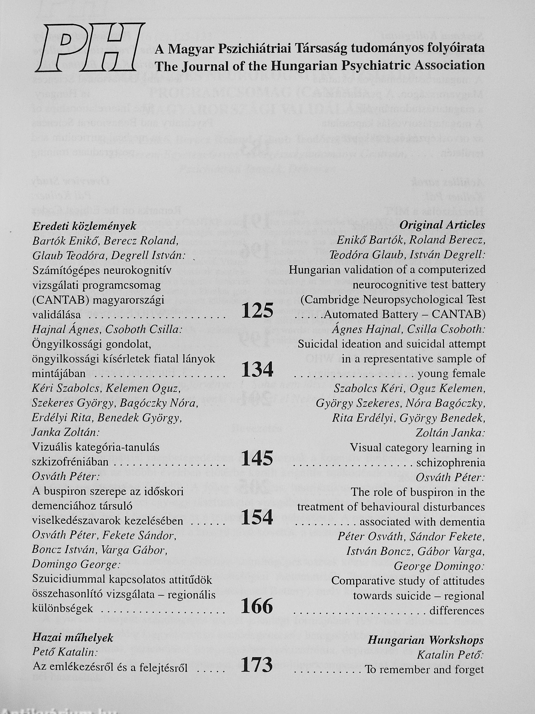 | Kiadó: | Magyar Pszichiátriai Társaság |