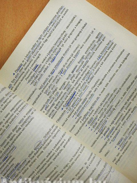 A borító foltos. Több lapon aláhúzás, színes sorkiemelés, bejegyzés látható.