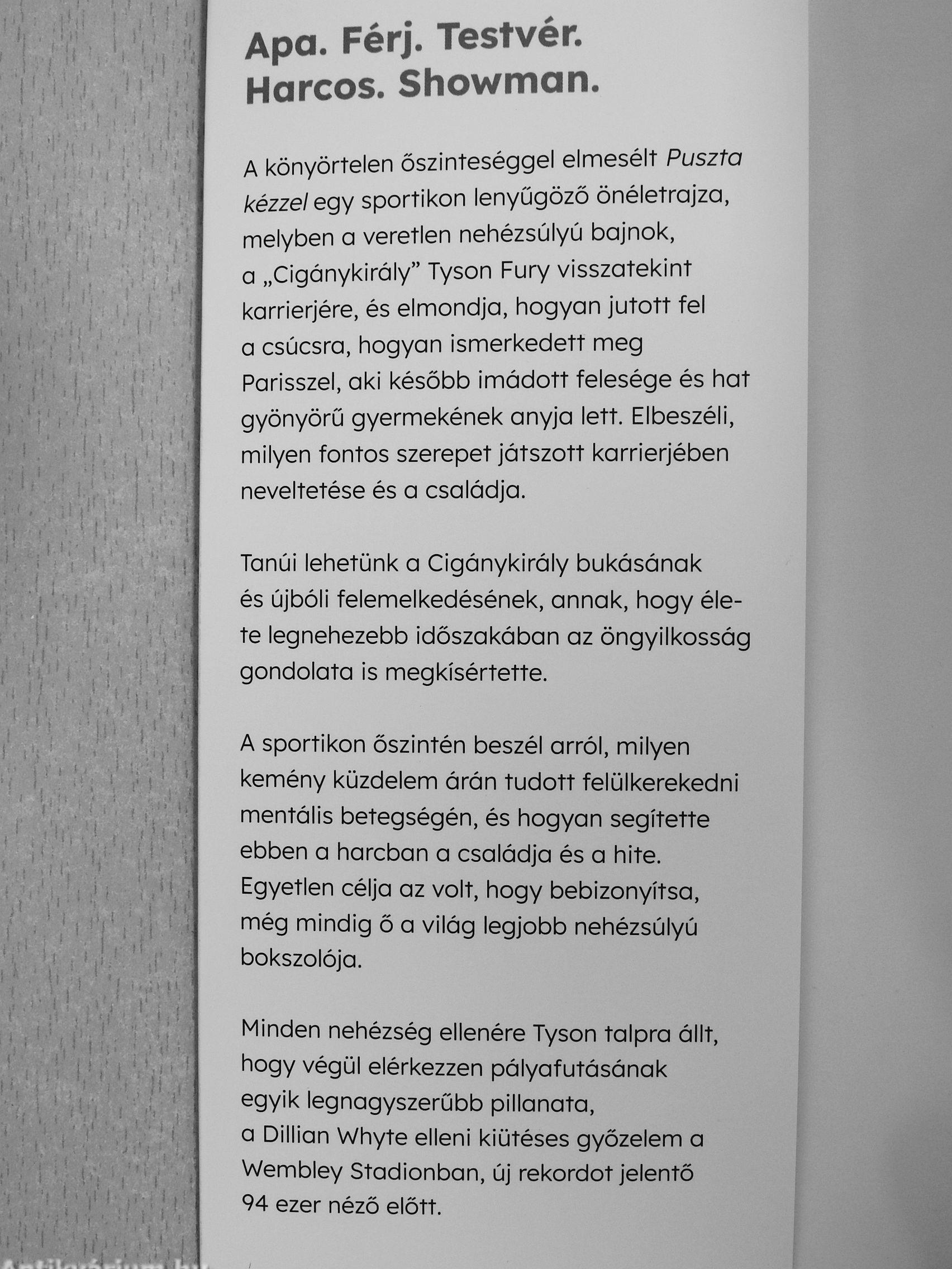 A könyörtelen őszinteséggel elmesélt Puszta kézzel egy sportikon lenyűgöző önéletrajza, melyben a veretlen nehézsúlyú bajnok, 0 „Cigánykirály" Tyson Fury visszatekint karrierjére, és elmondja, hogyan jutott fel a csúcsra, hogyan ismerkedett meg Parisszel, aki később imádott felesége és hat gyönyörij gyermekének anyja lett. Elbeszéli, milyen fontos szerepet játszott karrierjében neveltetése és a családja.