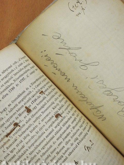 Több oldalon bejegyzés látható. Több oldal foltos.