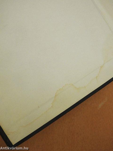 A borító kopott. Néhány lap a nedvességtől hullámos és foltos. A címlap hátoldalán címke található.