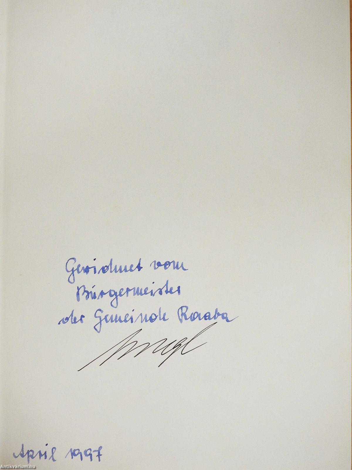Az előzéklapon Raaba polgármestere, Josef Gangl dedikációja látható.