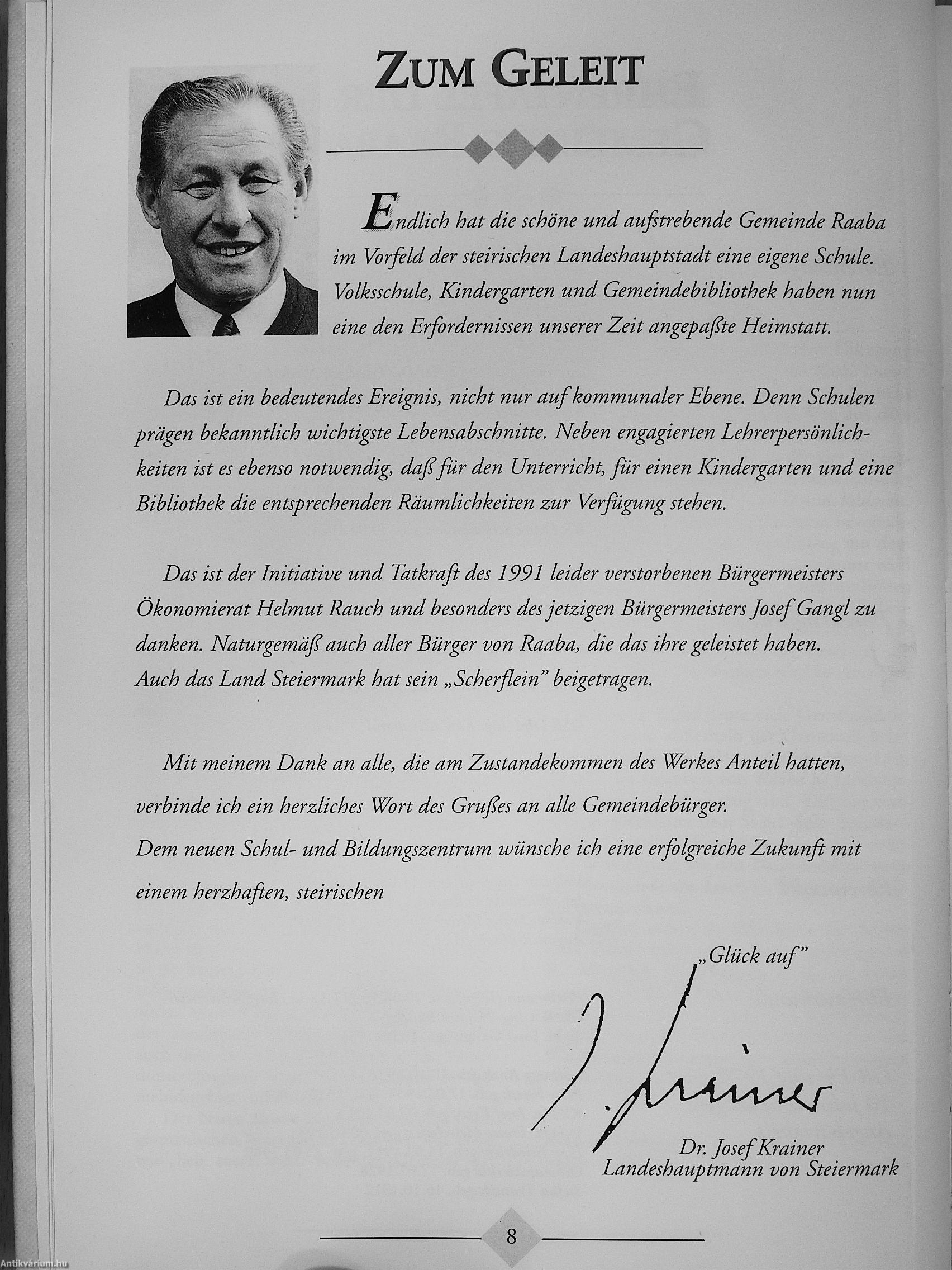 Megjegyzés: Josef Gangl Raaba polgármestere által dedikált példány. Színes és fekete-fehér fotókkal.