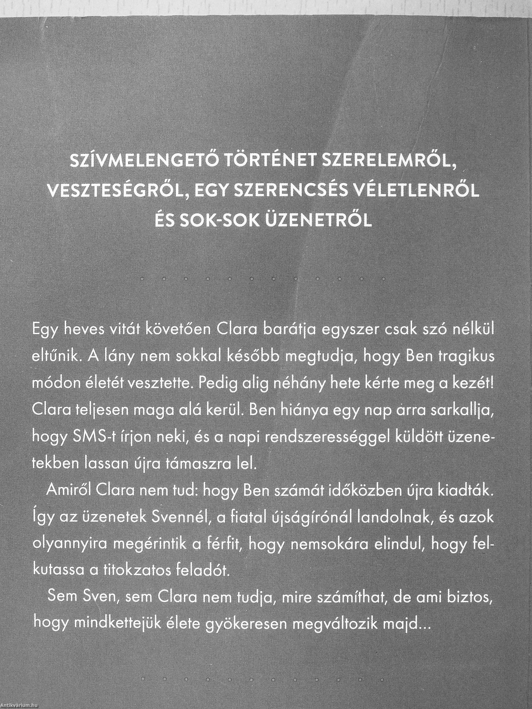 Egy heves vitát követően Clara barátja egyszer csak szó nélkül eltűnik. A lány nem sokkal később megtudja, hogy Ben tragikus módon életét vesztette. Pedig alig néhány hete kérte meg a kezét! clara teljesen maga alá kerül. Ben hiánya egy nap árra sarkallja, hogy SMS-t írjon neki, és a napi rendszerességgel küldött üzenetekben lassan újra támaszra lel.