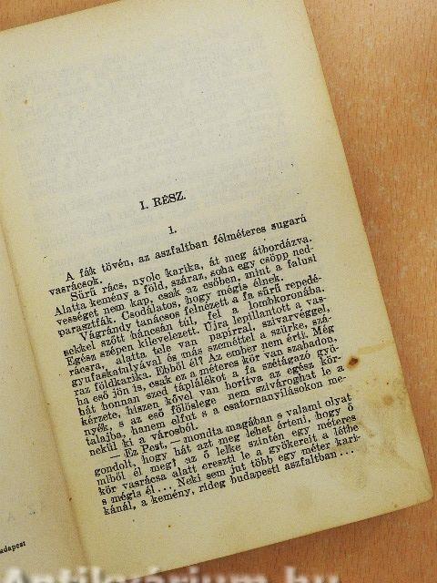 - Ez Pest, - mondta magában s valami olyat gondolt, 'hogy hát azt meg lehet érteni, hogy ő miből él meg? az ő lelke szintén egy méteres kör vasrácsa alatt ereszti le a gyökereit a létbe s mégis él... Neki sem jut több egy méter karikánál a kemény, rideg budapesti aszfaltban..."