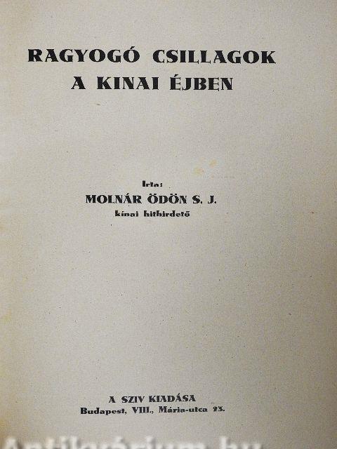 Megjegyzés: Fekete-fehér fényképekkel illusztrálva. Írta Molnár Ödön S. J. kínai hithirdető. Nyomatott: Korda R. T. nyomdájában, Budapest.
