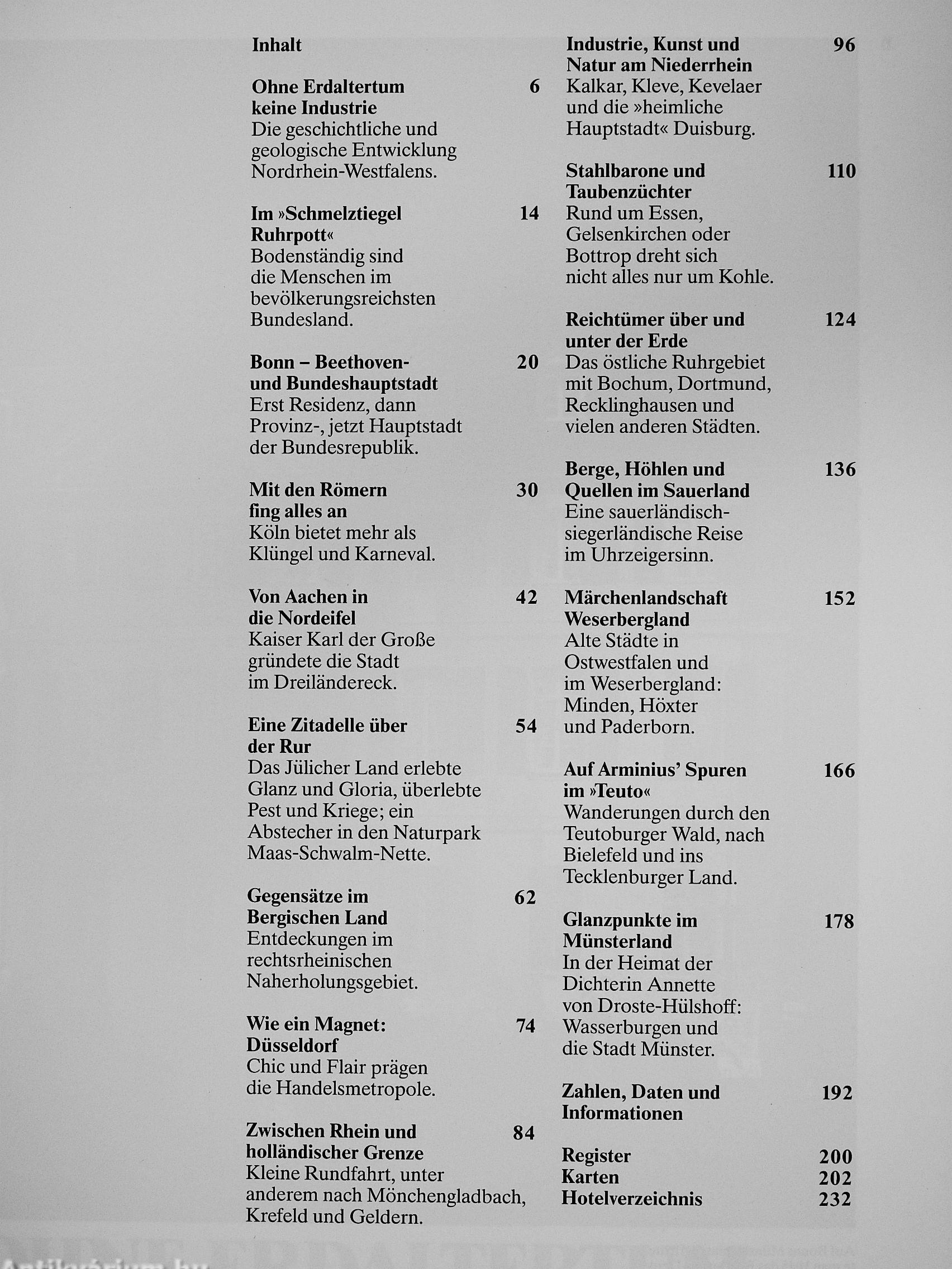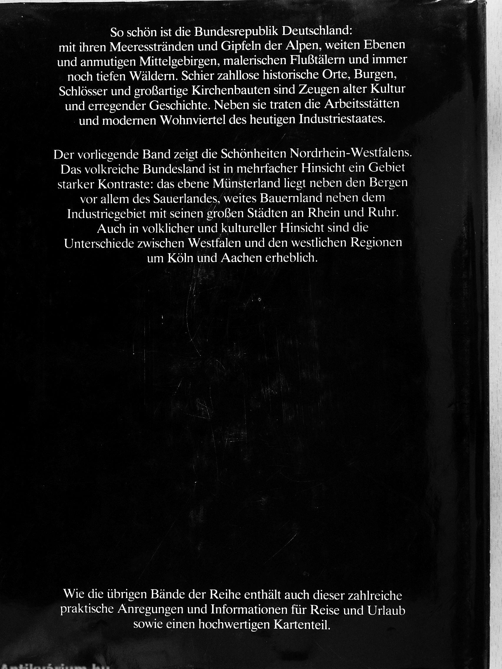 Der voriiegende Band zeigt die Schönheiten Nordrhein-Westfalens. Das volkreiche Bundesland ist in mehrfacher Hinsicht ein Gebiet starker Kontraste: das ebene Münsterland liegt neben den Bergen vor allem des Sauerlandes, weites Bauemland neben dem Industriegebiet mit seinen großen Städten an Rhein und Ruhr.