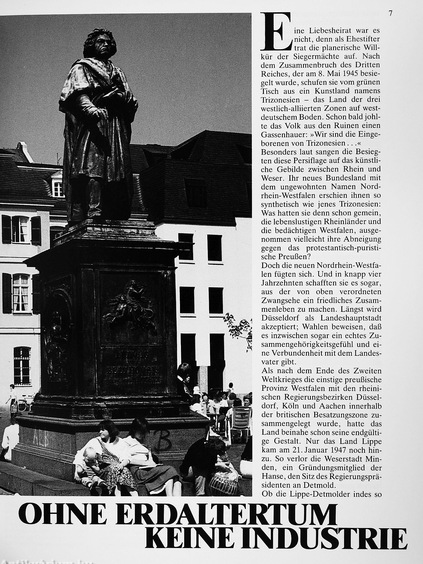noch tiefen Wäldern. Schier zahllose historische Orte, Burgen, Schlösser und großartige Kirchenbauten sind Zeugen alter Kultur und erregender Geschichte. Neben sie traten die Arbeitsstätten und modernen Wohnviertel des heutigen Industriestaates.