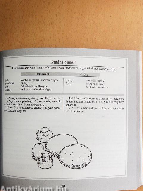E könyv nyújtotta étkezési tanácsok és étrendi javaslatok, receptek az ételek elkészítésére vonatkozóan biztosítják a betegek számára is az élet egyik nagy élvezetét, az evést.