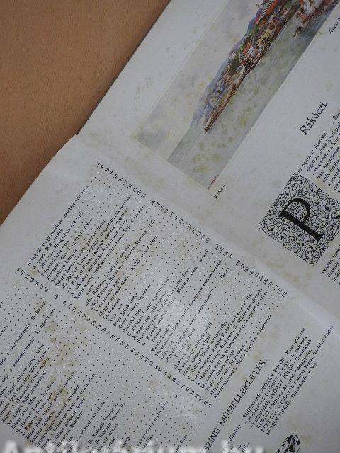 | Megjegyzés: | Fekete-fehér szövegközti képekkel, sokszínű műmellékletekkel díszített könyv. A borítón II. Rákóczi Ferencz aranyozott dombornyomású képmásával. A Pesti Napló előfizetőinek készült kiadás. Hornyánszky V. Cs. és Kir. udvari könyvnyomdája nyomása, Budapest. |