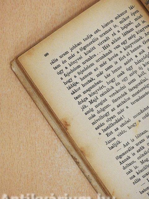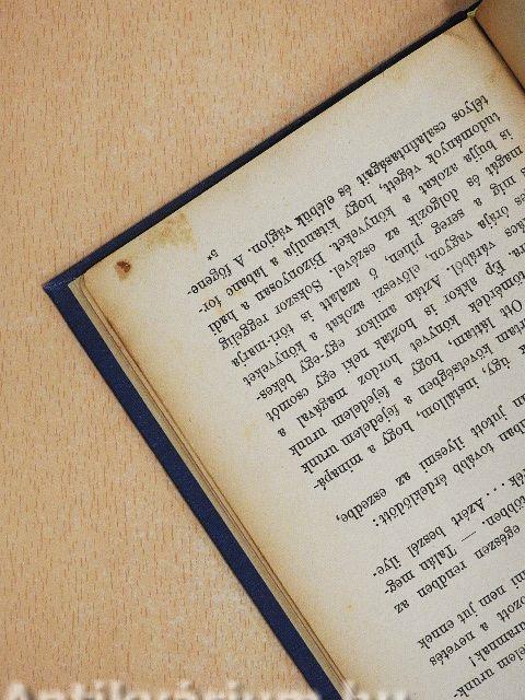 Az első kötéstábla eredeti. A borító foltos és kopott. A lapélek és néhány lap foltos. Az előlapon tulajdonosi pecsét és ajándékozási bejegyzés található.