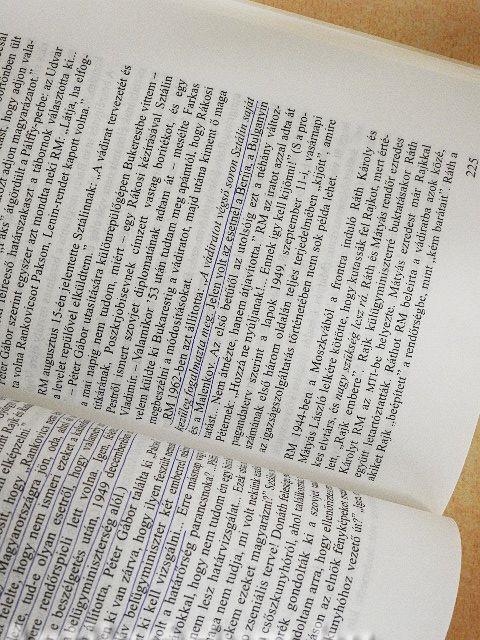 A szerző a témában itthon fellelhető valamennyi dokumentumot felhasználva és számtalan személyes interjú alapján dolgozta ki a gyakran ellentmondásos tényeket, eseményeket; egyebek között a kommunista és a szociáldemokrata párt egyesülését, a Titóval való szembefordulást, az ÁVO-ÁVH történetét, Kádár János szerepét. a Mindszenty-ügyet, a Rajk-pert és a korszak valamennyi nagy koncepciós perét.