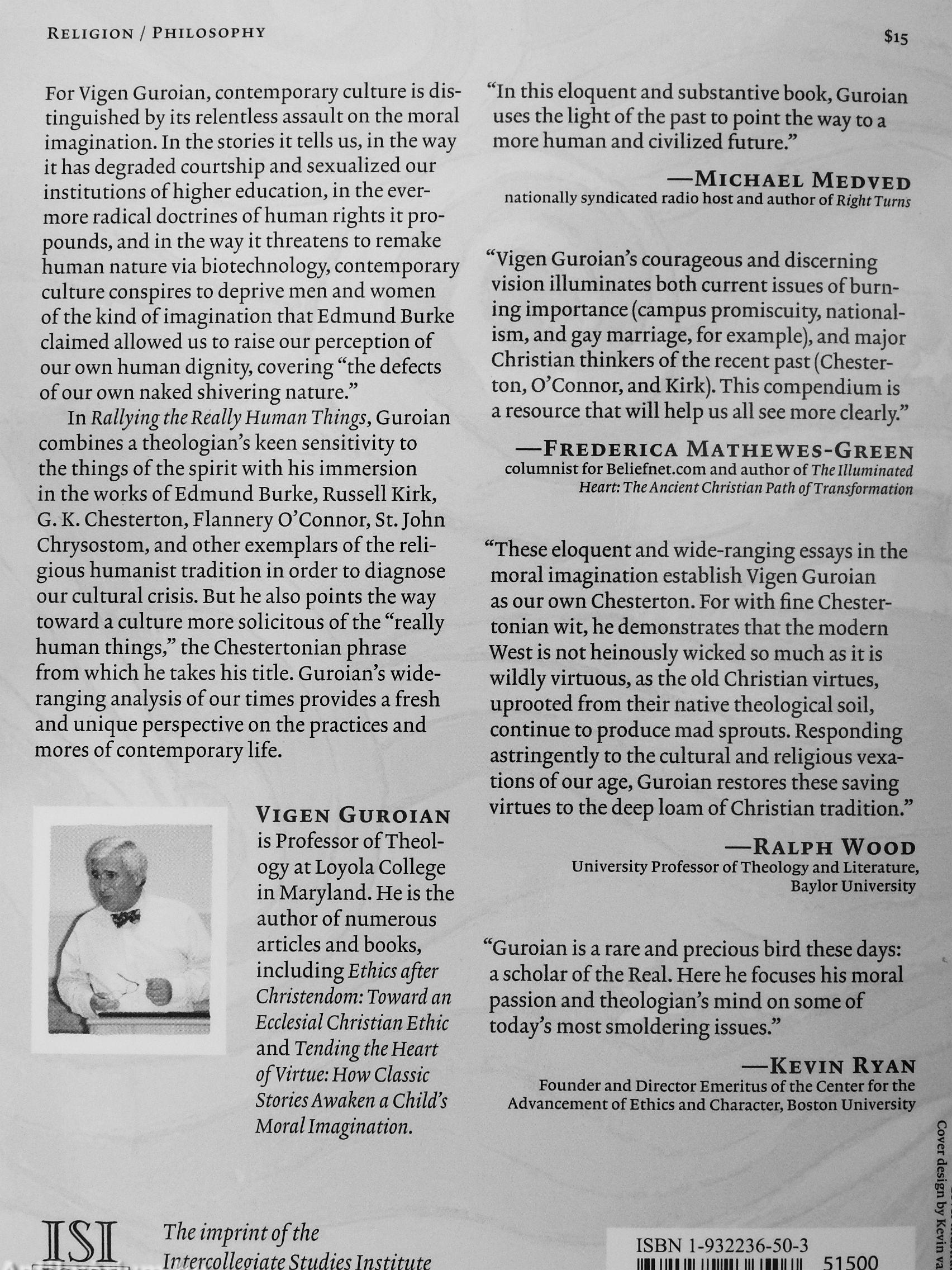 "Vigen Guroian's courageous and discerning vision illuminates both current issues of burning importance (campus promiscuity, nationalism, and gay marriage, for example), and major Christian thinkers of the recent past (Chesterton, O'Connor, and Kirk). This compendium is a resource that will help us all see more clearly."