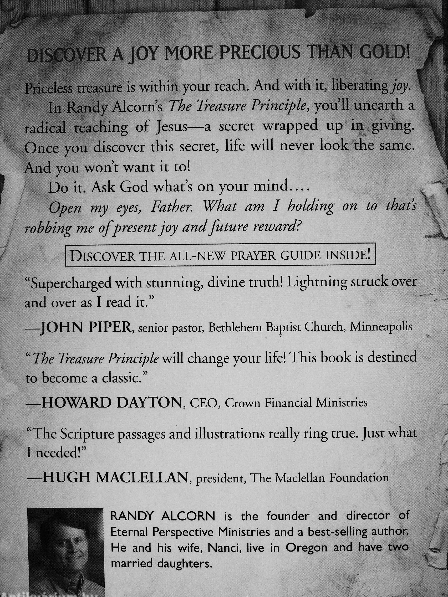 In Randy Alcorn's The Treasure Principle, you'll unearth a radical teaching of Jesus—a secret wrapped up in giving. ,Pnce you discover this secret, life will never look the same. And you won't want it to!